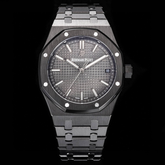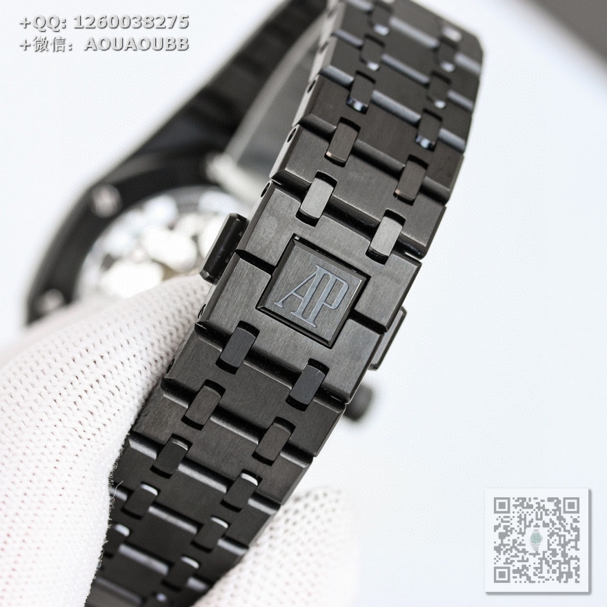 【品牌】爱彼【产品介绍】ZF钢表之王 爱.彼15500系列“DLC”版本 高亮黑的金钢碳镀层既保留了整表的磨砂质感又增加了暗黑的层面。V2版——震撼上线:剔除机芯甲板多余部分,使之变得更加镂空——成就钢表巅峰—— 实力演绎 卫冕“钢”王!【6大精妙之处】1.正品拆解开模,尺寸为41mm2.完美还原正品表壳的每一处细节,尽显正品“棱角分明 坚毅果敢”的阳刚气质。3.钢带的做工无可挑剔,比市面上任何钢带表做工均要更上一层楼,钢带头粒和表头衔接的“缓冲带”的松紧程度与正品一模一样。4.自动陀的与原装致敬,是市面唯一做到颜色于原装一致的版本(市面一般版本均偏红)其上的ap族徽雕刻独一无二。5.采用9015机芯改爱彼CAL.4302一体机,同步原装正品机型,更稳定,更优秀,更真实。6.表盘的“饼干纹理”立体饱满,精神抖擞!15500DLC版本现正式发布!欢迎您的品鉴!【款式】男款【尺寸】直径41mm【表带】精钢表带【镜面】蓝宝石镜面【机芯】cal.4302机芯【防水】50米【配件】原装盒,说明书,质保卡,吊牌,香港机打发票【品质检测】保证所有手表实物拍摄,所见即所得 , 手表发货前都会有严格检查测试,确保您收到的手表无质量问题