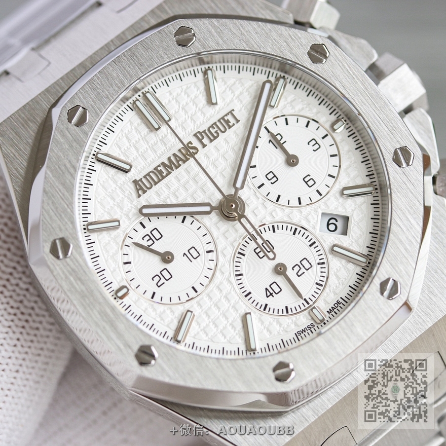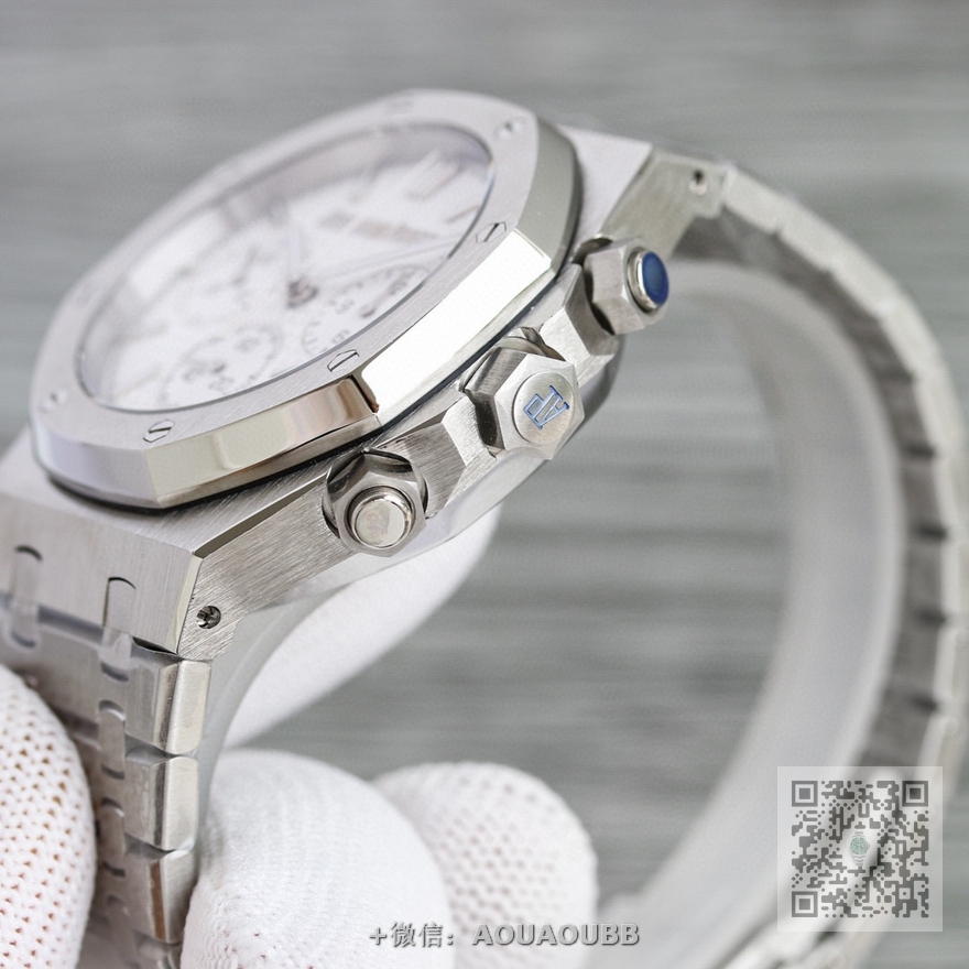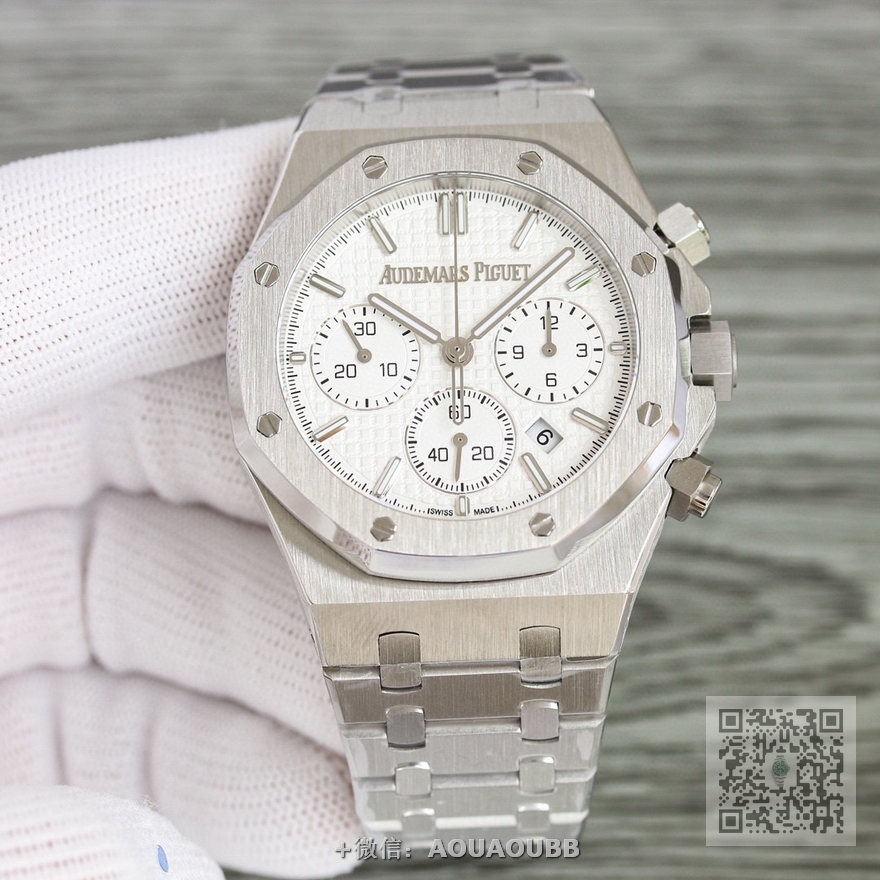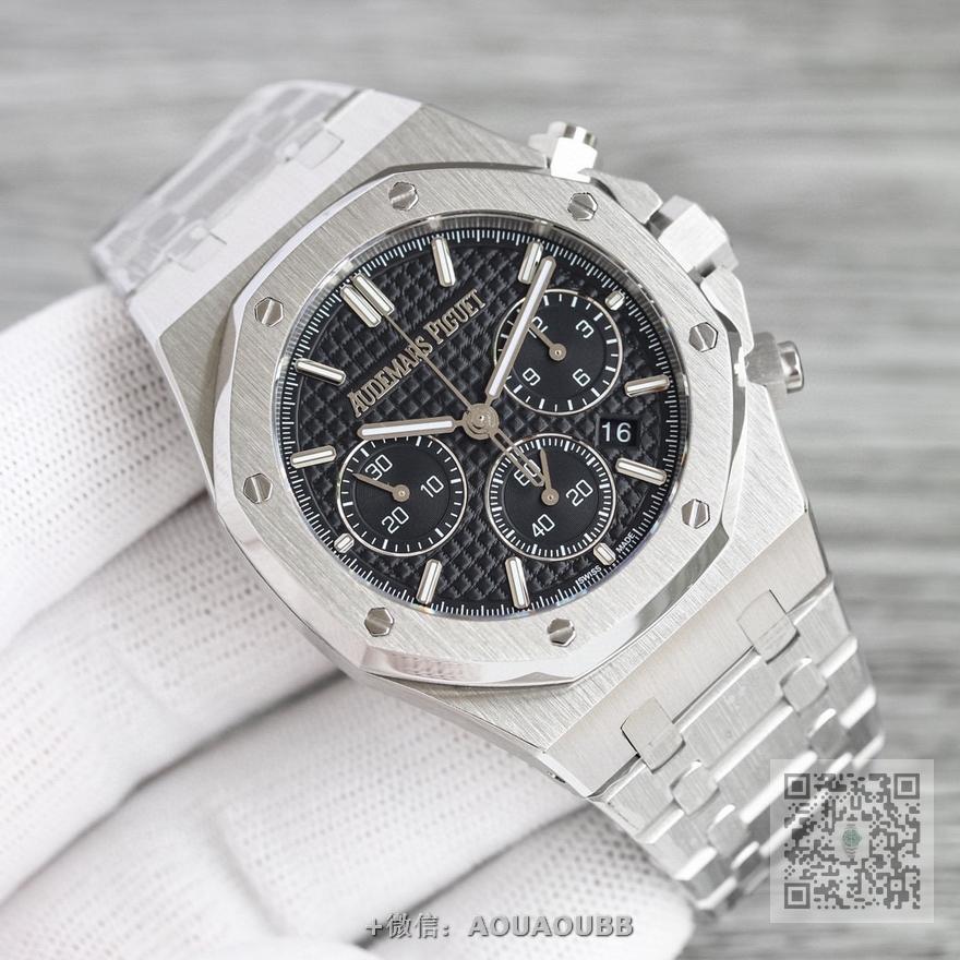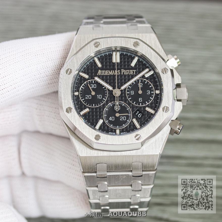 【产品介绍】RWF 新品 市场最高版本 AP/爱彼 皇家橡树系列 AP2 全新26240计时码表,采用同正品一致(6字位小秒  透底机芯)7750计时机芯,搭配防眩目蓝宝石高透玻璃  表盘装饰经典的Grande Tapisserie大型格纹图案 316精钢采用缎面拉丝与抛光交替, 呈现出哑光与亮面相映成趣效果,粗犷大气的41mm表盘,劲道十足,超强夜光显示,可以在任何环境下读取时间。