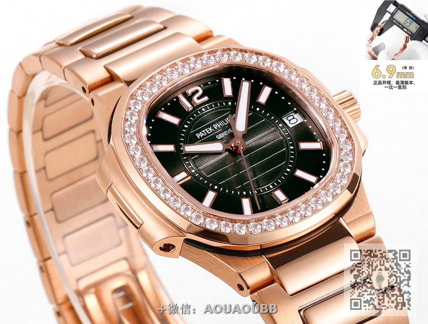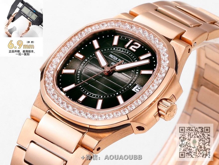 【品牌】百达翡丽【产品介绍】【最薄版本】钢带送皮带扣,(送奶茶色,棕,蓝,灰,黑,五选一)买皮带款送钢带,都是以钢带版本配皮带扣出货,送礼品盒夏日将至,轻薄凉爽(GR严选)重金打造天花板PP鹦鹉螺7010系列!造价秒杀市面绝大多数石英女表售价。0误差0故障,自带或送礼再无后顾之忧。原版尺寸:32mm直径,6.9mm厚度。搭载瑞士进口石英机芯。此款鹦鹉螺女款不仅拥有男表的优雅运动风格,还增加了几分柔美、使得女装腕表更加个性时尚,也是当下最热门的PP女士腕表之一!表壳316精钢镶钻46颗明亮式奥宝水钻,6.9厚度真正做到薄如蝉翼,整表真空颅内白金及玫瑰金双色任选,带来非凡触感与视觉享受,呈现璀璨光泽,购买赠送皮带+原装扣一套及原版一致便携式皮盒一个【款式】女款【尺寸】32mmx6.9mm【表带】精钢表带+原厂牛皮表带【镜面】蓝宝石镜面【机芯】瑞士Cal.E 23-250 S C石英机芯【防水】50米【配件】原装盒,说明书,质保卡,吊牌,香港机打发票【品质检测】保证所有手表实物拍摄,所见即所得 , 手表发货前都会有严格检查测试,确保您收到的手表无质量问题