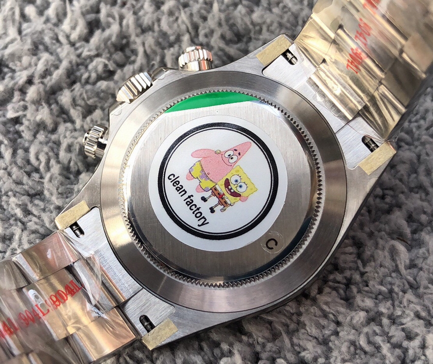 【产品介绍】Clean 熊猫迪  完美超越 壳带 盘针。亮点是机芯。同款4130机芯。clean厂/c厂迪通拿使用904L材料 4130机芯/n厂同款机芯 ar表带 clean表盘/*死白色*唯一对版clean陶瓷圈buff工厂指针厚度12.2-12.3之间 本次手表的特点 玻璃和表壳衔接的地方 完全透明,看不到任何白边 玻璃边缘弧形跟原装一致 玻璃凸出陶瓷圈高度 跟原装一样---------陶瓷圈使用clean 字体更加立体圆润 陶瓷圈边缘有轻微圆角---------表盘 唯一一个使用 *死白色*其他都会发黄/发红后续会放出各大代用字面对比/真假对比字钉有圆角打磨 夜光填充高度适中 亮度也ok字体印刷立体 黑色小圈尺寸与原装一致 表带 和表壳衔接的地方 顶部 无缝衔接 尖角那里 表带/表壳 配合 无缝隙 表带/壳 头粒 顶部与表壳持平 尾部略微凹陷 表带/壳 头粒 底部与壳  在头部 呈凹陷状 与原装一致