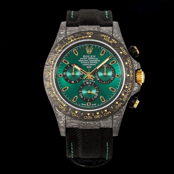 【品牌】劳力士【产品介绍】Diw 典藏臻品 超级碳纤维定制版 宇宙计时迪通拿系列 腕表直径为40MM 这一季度更新了13款颜色1/月牙绿洲:月亮表盘与绿色搭配成鲜明对比2/月牙蒂芙尼:近年流行的蒂芙尼蓝色也加入了这个系列3/4渐变绿:渐变绿色一直备受欢迎,奈何市面上能选择的款式有限,这次更新也有了一个新的颜色可选择5/6渐变棕色:这是一个创新大胆的颜色搭配,市面上几乎没有这款颜色款式。独一无二般存在7、珊瑚橙:海洋元素珊瑚橙色配白色纤维,配灰色表盘,一个惊人的杰作。8、全白色:白色陶瓷搭配白石英纤维,陶瓷和碳纤维首次结合。9、IRBIS 2:黑白配色壳身,10、沙漠之鹰阿拉伯语(Desert Eagle Arabic):灵感来自沙漠的美丽色彩,阿拉伯刻度和深棕色搭配能让你身临其境到沙漠里。11、黄金精华(Golden Essence):香槟金色表盘搭配黄金色圈口和白石英纤维壳身。12、艾维亚灰(Avia Grey):以灰色表盘为主题 比较有意思的是表盘还配有1-19测距仪刻度,此款最大亮点在于6字位️秒针会一直转,这是一个新的创新尝试。13、奶油反转金(Cream Invert Gold):西装暴徒定制款,黑色表盘配香槟金色外圈刻度,凸显简约高贵。【款式】男款【尺寸】直径40mm【表带】尼龙纤维表带【镜面】蓝宝石镜面【机芯】7750机芯【防水】100米防水【配件】原装盒,说明书,质保卡,吊牌,香港机打发票【品质检测】保证所有手表实物拍摄,所见即所得 , 手表发货前都会有严格检查测试,确保您收到的手表无质量问题