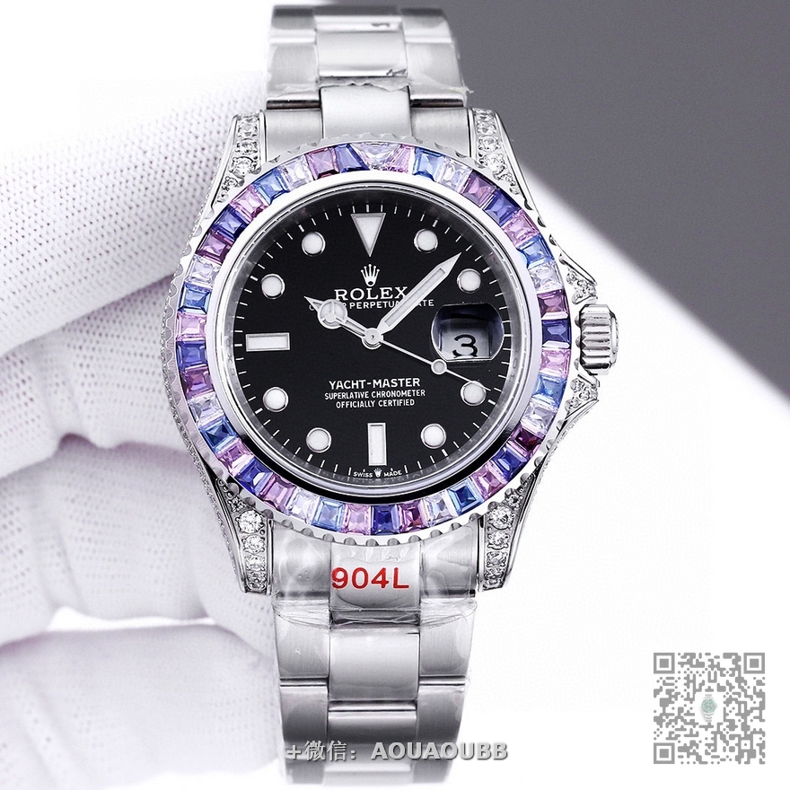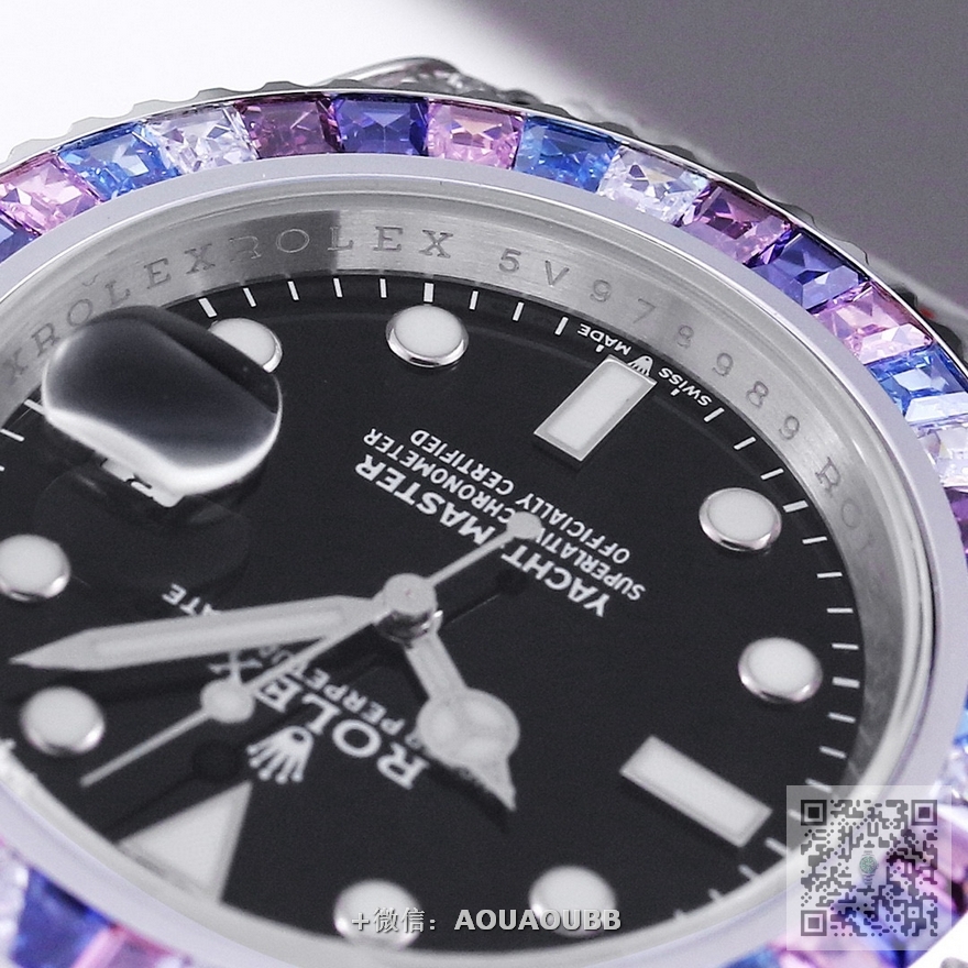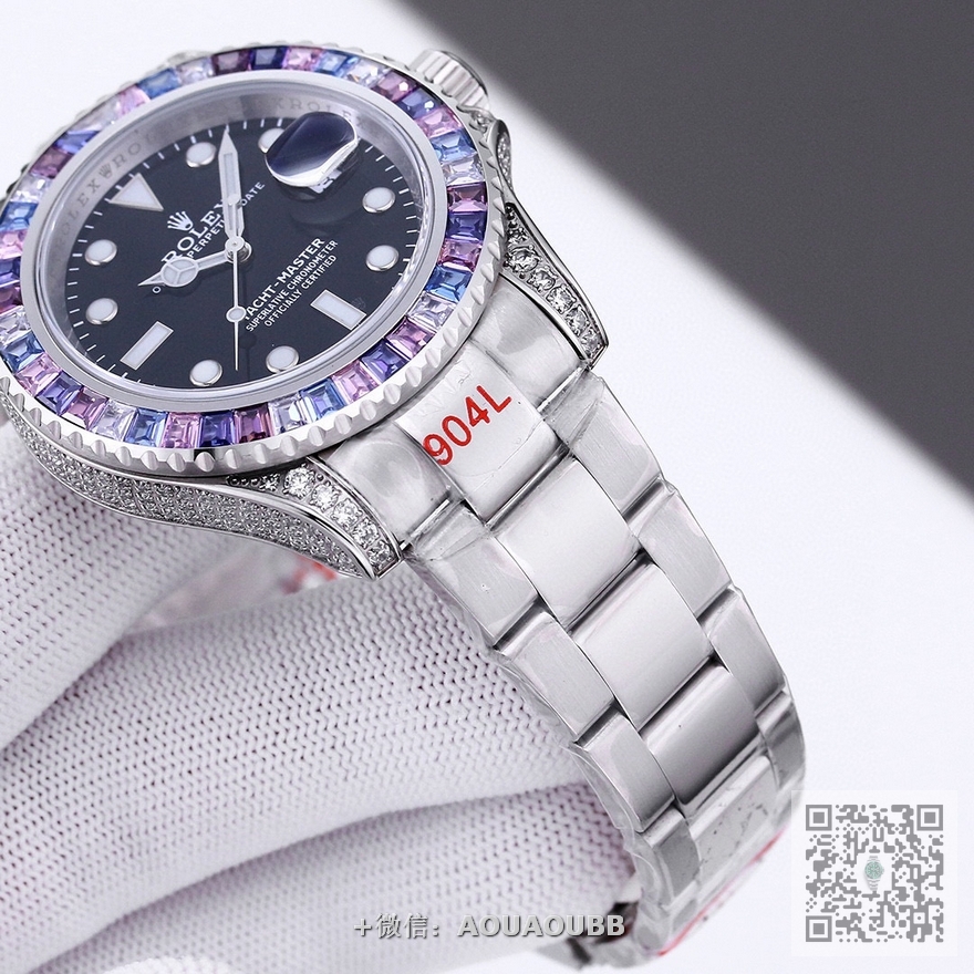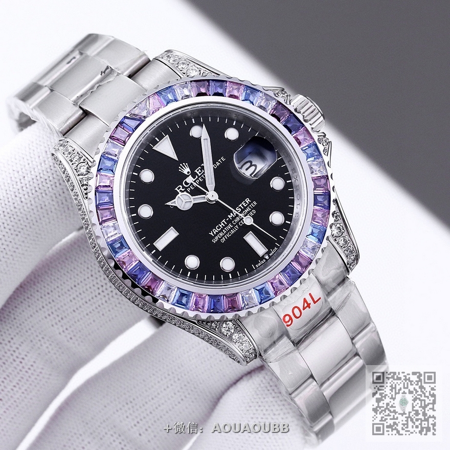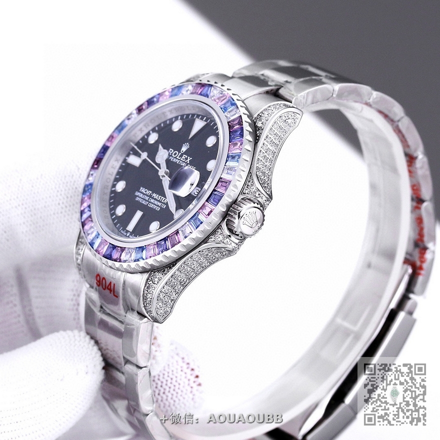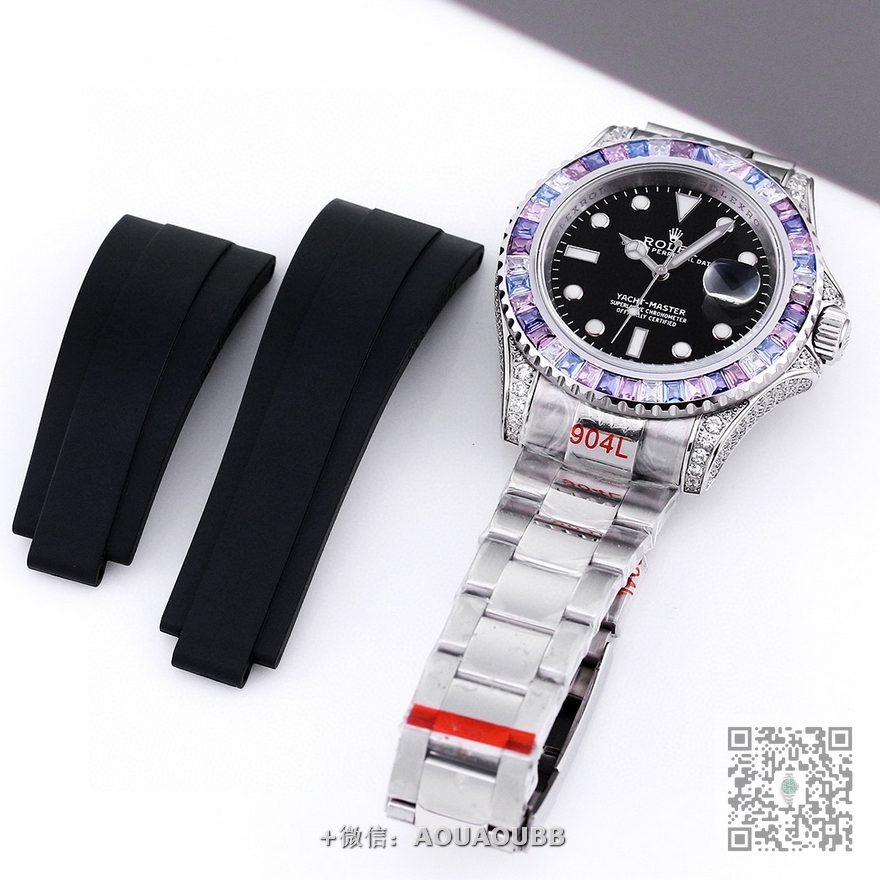 【品牌】劳力士【款式】男款【产品介绍】劳力士Rolex全球限量宝石款游艇名仕型,美学上推迟了极限,在这款表上您可将对珠宝和瑞士腕表的喜爱合二为一。表圈、表壳、表扣都镶满施华洛世奇美钻!行走的艺术品,身份与地位的象征,气场一目了然!实物惊艳!爱不释手️ 上手震撼尊贵非凡。您值得拥有!【尺寸】直径40mm【机芯】采用象征着劳力士的灵魂蓝游丝3135全自动一体机,性能极为稳定,复刻专柜正品机型【表壳】腕表尺寸40mm 每一细节做到一比一完美复刻。【表带】搭载904L精钢表带,另外配送一副透气舒适橡胶表带,坚韧柔软舒适【表扣】原装表扣满镶施华洛世奇美钻。【镜面】蓝宝石镜面。超强夜光字面,字面颜色更细腻做出了与正品一致的视觉效果!【防水】100米防水【配件】原装盒,说明书,质保卡,吊牌,香港机打发票【品质检测】保证所有手表实物拍摄,所见即所得 , 手表发货前都会有严格检查测试,确保您收到的手表无质量问题