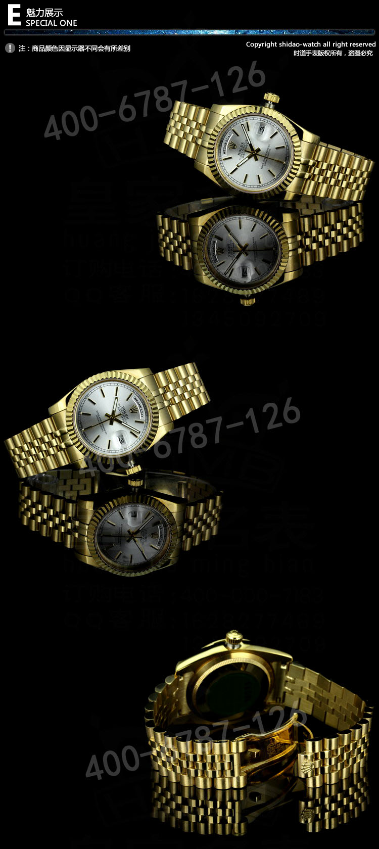退换货:本商城提供7天包退,15天包换服务。退换货的前提是手表无任何损花佩戴,千万不要拆卸表带,所退换商品要求具备商品收到时完整的外包装、配件、吊牌等不影响2次销售的。办理的话直接联系微信客服登记处理。4、手表防水注意事项