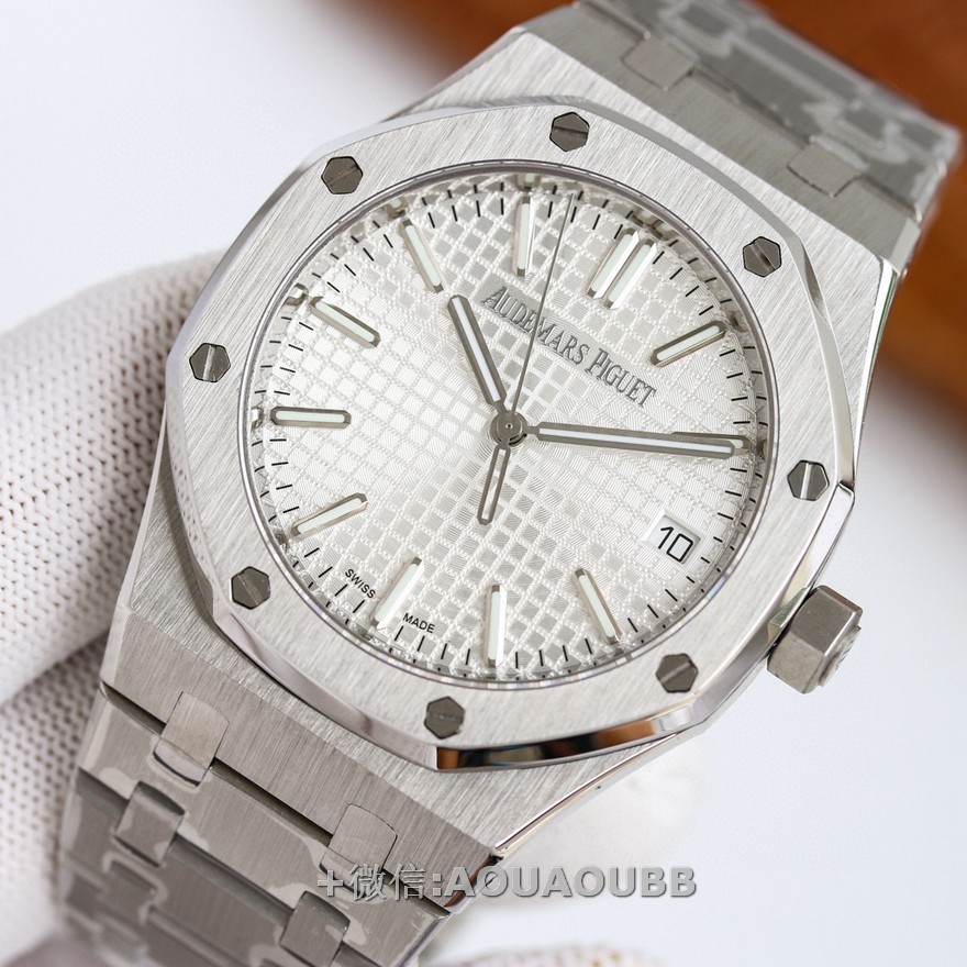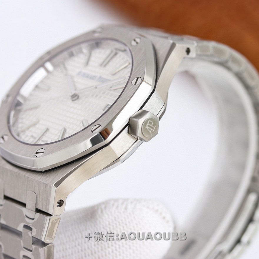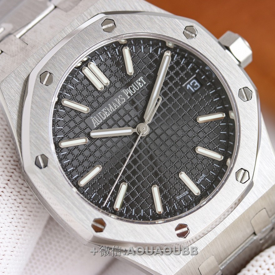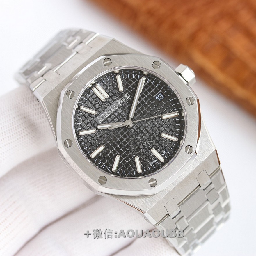 【品牌】爱彼【产品介绍】ZF新款首发爱彼皇家橡树50周年15510ST系列 新款15510移除了“AP”金标,选择只保留爱彼的“Audemars Piguet” 全称,并且用上了 CODE 1159的logo工艺,精细的全立体金标。机芯自动陀从AP 金色陀换成了50字样的银色金陀更规整更复古。机芯采用9015改AP.CAL4302一体机芯,超级稳定,腕表尺寸41mm,还没有入手钢王,赶紧哈【款式】男款【尺寸】直径41mm【表带】精钢表带【镜面】蓝宝石镜面【机芯】cal.4302一体机芯【防水】50米防水【配件】原装盒,说明书,质保卡,吊牌,香港机打发票【品质检测】保证所有手表实物拍摄,所见即所得 , 手表发货前都会有严格检查测试,确保您收到的手表无质量问题