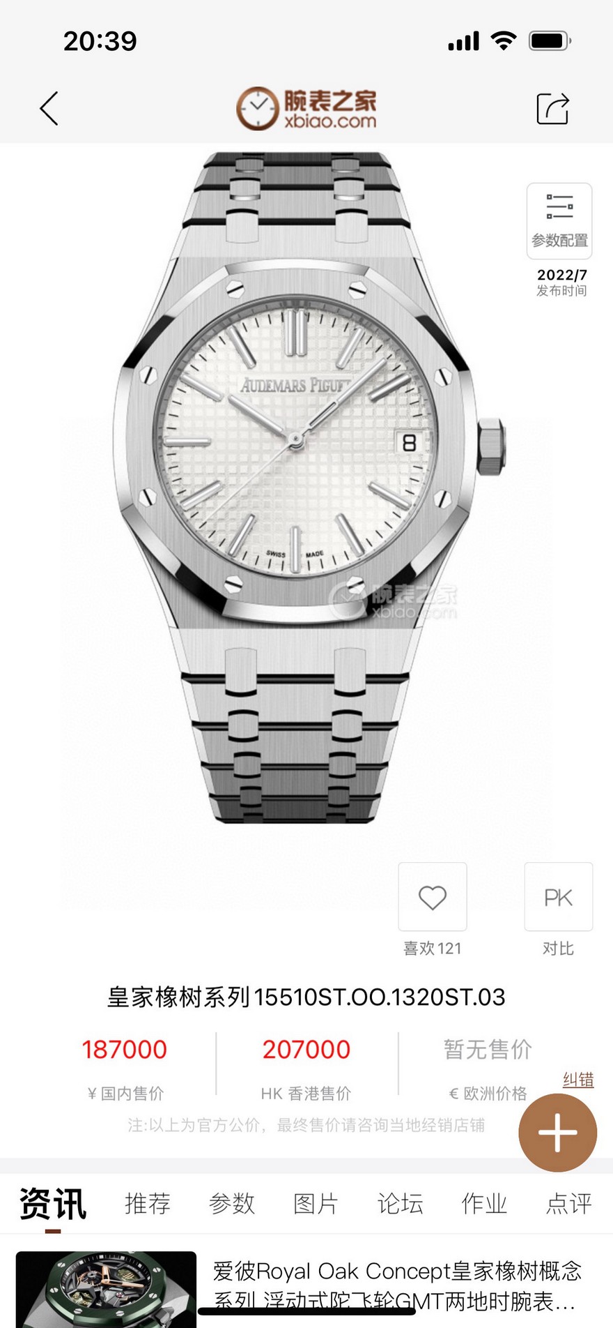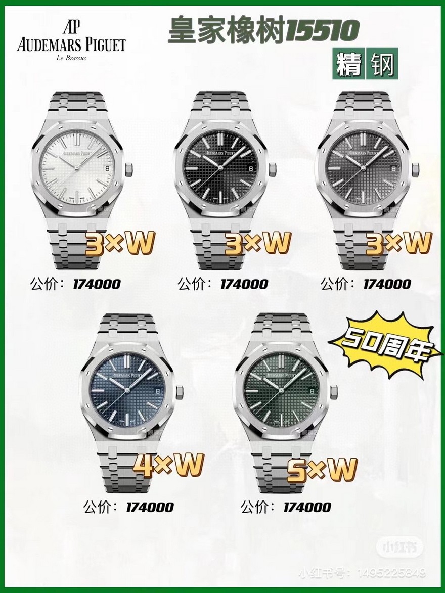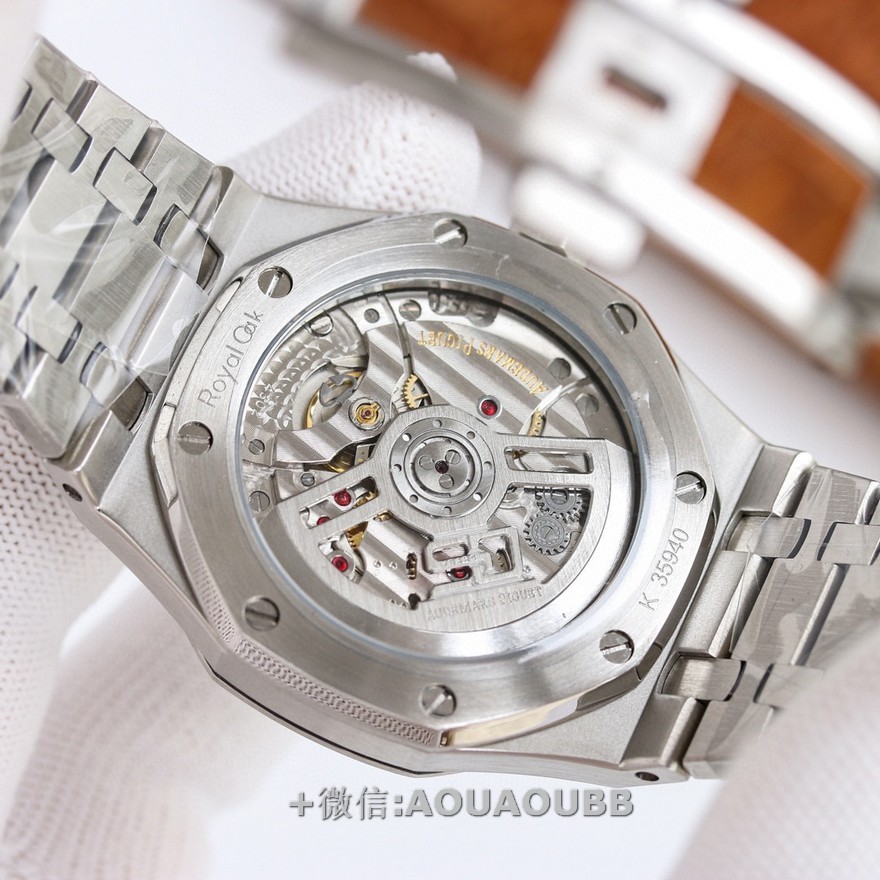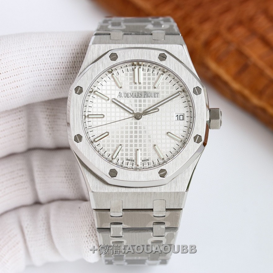 【品牌】爱彼【产品介绍】ZF新款首发爱彼皇家橡树50周年15510ST系列 新款15510移除了“AP”金标,选择只保留爱彼的“Audemars Piguet” 全称,并且用上了 CODE 1159的logo工艺,精细的全立体金标。机芯自动陀从AP 金色陀换成了50字样的银色金陀更规整更复古。机芯采用9015改AP.CAL4302一体机芯,超级稳定,腕表尺寸41mm,还没有入手钢王,赶紧哈【款式】男款【尺寸】直径41mm【表带】精钢表带【镜面】蓝宝石镜面【机芯】cal.4302一体机芯【防水】50米防水【配件】原装盒,说明书,质保卡,吊牌,香港机打发票【品质检测】保证所有手表实物拍摄,所见即所得 , 手表发货前都会有严格检查测试,确保您收到的手表无质量问题