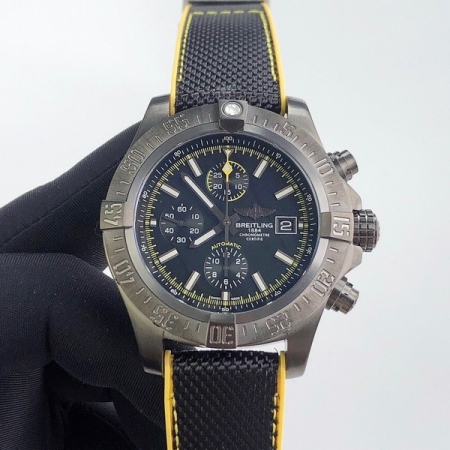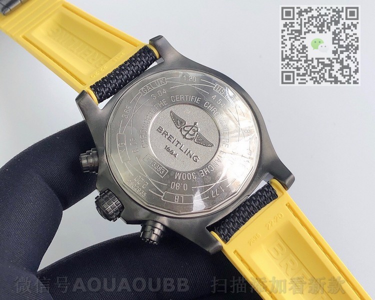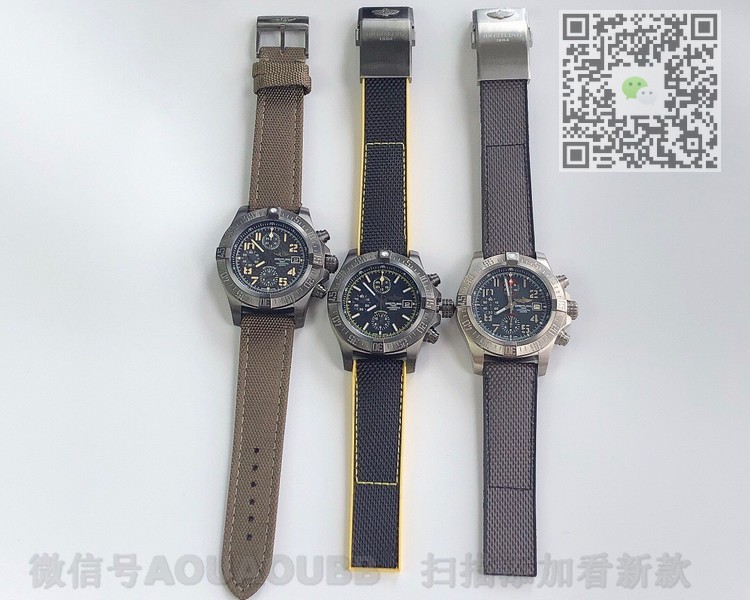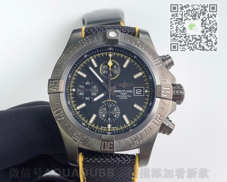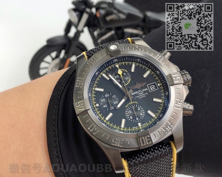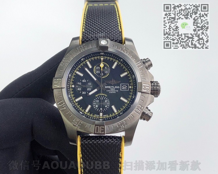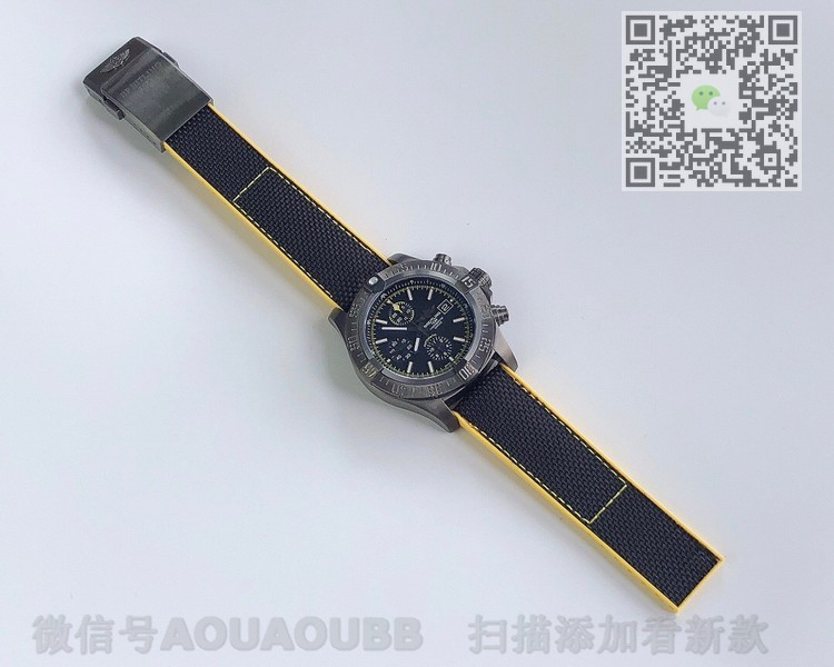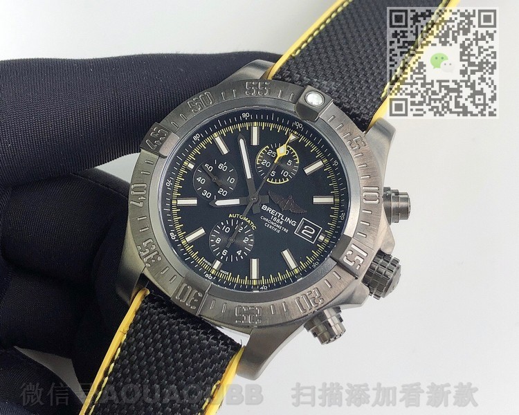 GF究级新作】百年灵复仇者飓风系列45mm计时码表,瑞士ETA7750机械机芯两年前购入原装拆解检验,经GF制表师多次努力,终破解沿袭Breitlight®材质,Breitlight®一种热塑性树脂,具有耐高温的优良特性,将聚碳酸酯与碳纤维复合,材料比钛金属轻3.3倍,比精钢轻5.8倍,但却更加坚固,摔不烂!且具备众多优点:刮擦可打磨抛光、腐蚀的超强耐抗力,抗磁性、抗过敏性,同时拥有比金属更加温暖的触感,并呈现碳纤维的斑驳视觉效果。(原材料购于瑞士,来之不易,喜欢的不要错过哦)