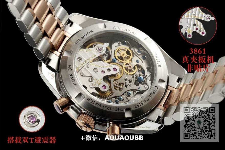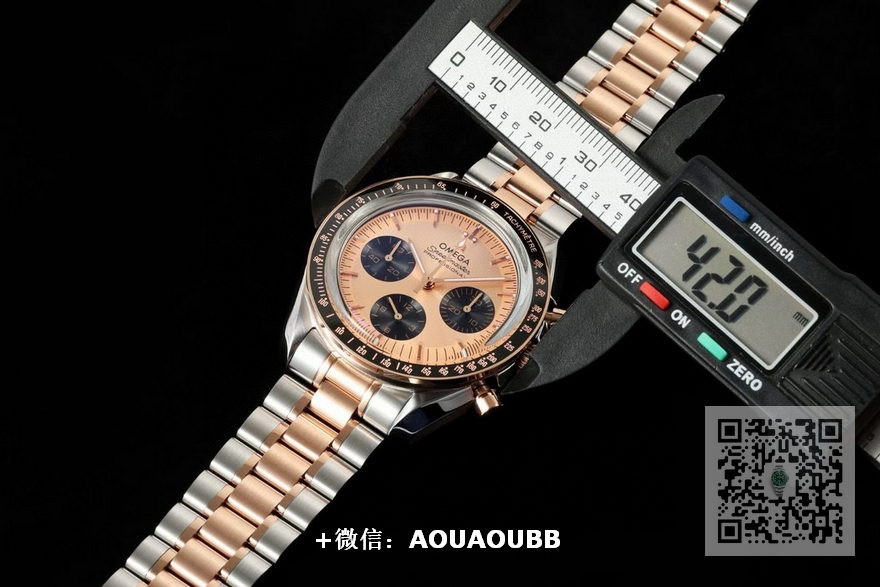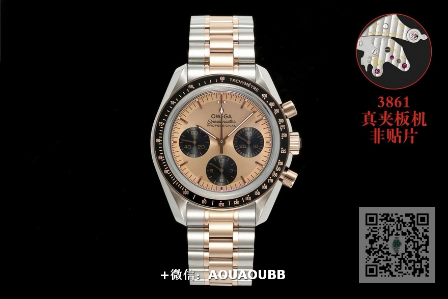 【品牌】欧米茄【产品介绍】欧米茄 OMEGA 超霸系列3861月球表 间金款 310.20.42.50.02.001 42毫米的表壳直径搭配太阳射线打磨效果的阶梯式表盘,设有经黑化处理的小表盘和小时刻度,呈现出别具一格的视觉冲击力,黑色陶瓷表圈饰以由OMEGA Ceragold技术制成的测速刻度, 并设有早期超霸表款标志性的“Dot over 90” 标记。内部搭载的3861至臻天文台机芯,高精准度和防磁能力,还拥有令人赞叹的机芯打磨工艺, 奢华与精准的结合其独特的设计和卓越的性能,成为钟表收藏家与太空迷们梦寐以求的时计。【款式】男款【尺寸】直径42mm【表带】精钢表带【镜面】蓝宝石镜面【机芯】3861机芯【防水】50米【配件】原装盒,说明书,质保卡,吊牌,香港机打发票【品质检测】保证所有手表实物拍摄,所见即所得 , 手表发货前都会有严格检查测试,确保您收到的手表无质量问题