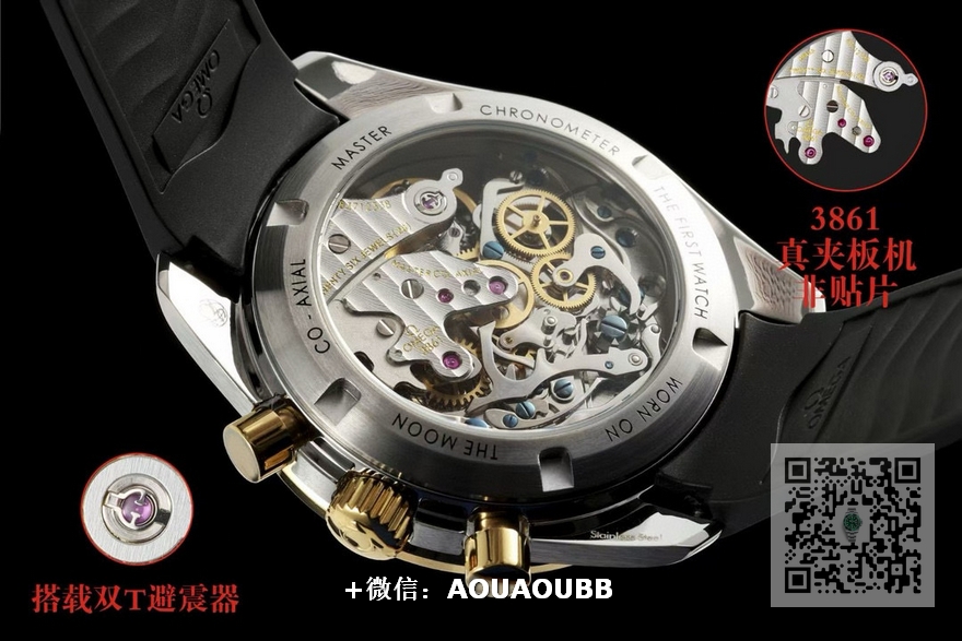 【品牌】欧米茄【产品介绍】欧米茄 OMEGA 超霸系列3861月球表 间金款 310.20.42.50.02.001 42毫米的表壳直径搭配太阳射线打磨效果的阶梯式表盘,设有经黑化处理的小表盘和小时刻度,呈现出别具一格的视觉冲击力,黑色陶瓷表圈饰以由OMEGA Ceragold技术制成的测速刻度, 并设有早期超霸表款标志性的“Dot over 90” 标记。内部搭载的3861至臻天文台机芯,高精准度和防磁能力,还拥有令人赞叹的机芯打磨工艺, 奢华与精准的结合其独特的设计和卓越的性能,成为钟表收藏家与太空迷们梦寐以求的时计。【款式】男款【尺寸】直径42mm【表带】橡胶表带【镜面】蓝宝石镜面【机芯】3861机芯【防水】50米【配件】原装盒,说明书,质保卡,吊牌,香港机打发票【品质检测】保证所有手表实物拍摄,所见即所得 , 手表发货前都会有严格检查测试,确保您收到的手表无质量问题