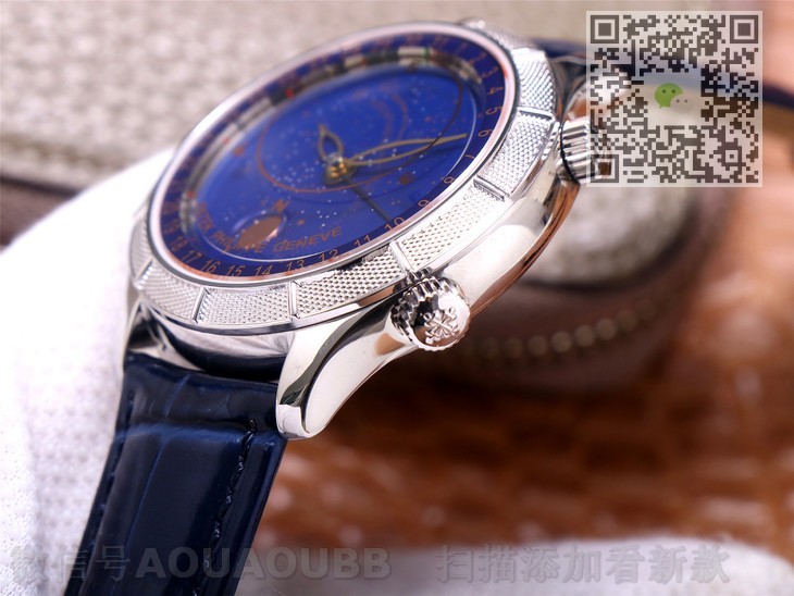 3、【功能】2点位把头第二档快调日历月牙指针,同时会带动月行轨迹;日历刻度和正品一样顺时针排列;5点位把头可变换苍穹图案;星空图案即为秒盘,每一秒都能感受斗转星移;天狼星与月亮中天时间、指针式日期显示。几乎实现了原装所有的功能,进入众人眼帘便知这不是一般的手表。