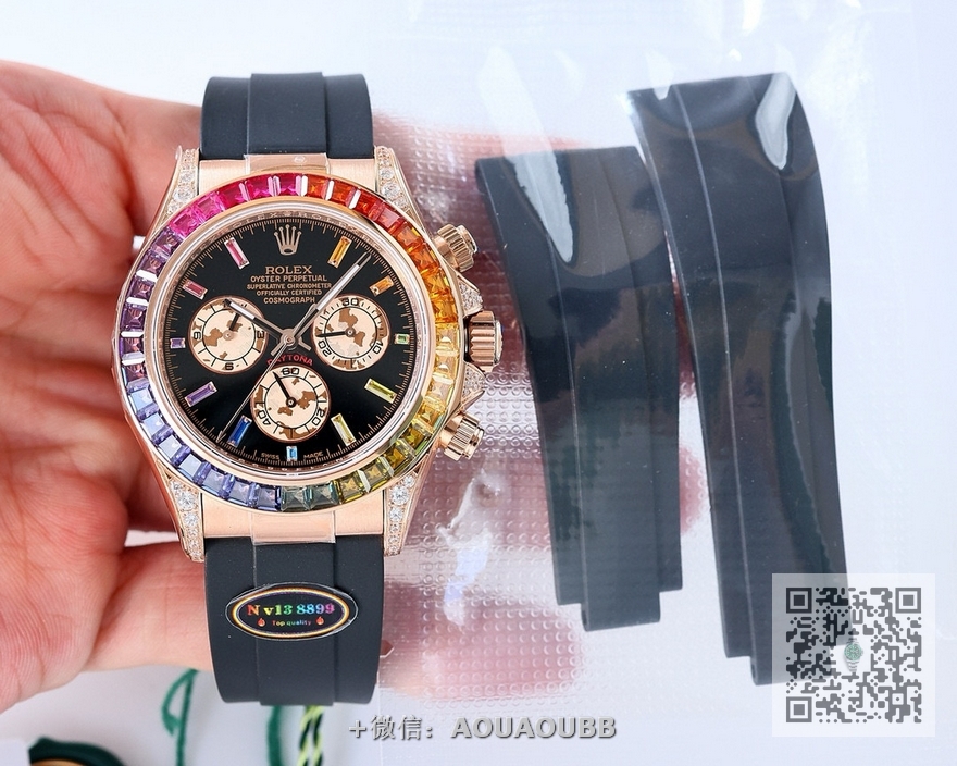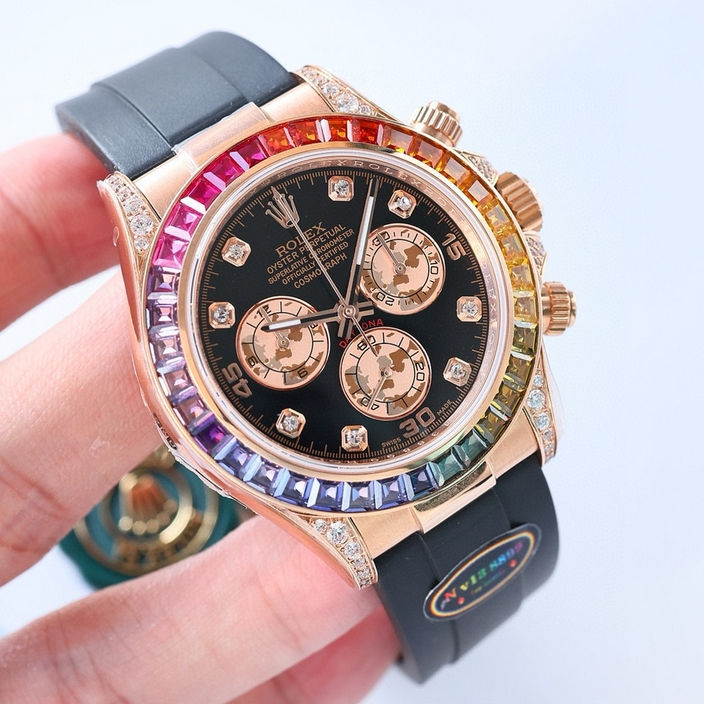 【品牌】劳力士【产品介绍】赤橙黄绿青蓝紫,谁持彩练当空舞”即经典迪通拿N v13版本之后再创新高 拆资重金打造耗时24个月- 最美彩虹 迪通拿 原版开模:超薄(拆膜最薄达12.2mm) 问鼎复刻巅峰 再续顶级品质 N v13版本(最美细节壳 内圈影编码同步一体 N v13 上手注定非富即贵寓意非凡的独立标志编码-就是怎么拉风、狂傲 ) 整体采用904 L 钢( 持久耐磨,拉丝工艺) 重点品质细节① 圈口:镶嵌顶配施华洛闪钻(小作坊暗淡死色)字盘:对版高端、底盘圆石或条石原版一致有托盘撑起宝石(小作坊直接贴底盘没有托盘不对版一眼假) ②玻璃: 凸起 、非平玻、 ③ 团队精神:严检零失误、升级6道QC、盘底无灰尘、无瑕疵 … 让客户上手省心省力省烦恼 ④钢带款跟胶带款:同步边角吊桥凸起供弯、头粒边角缝隙保持平整(钢款小作坊头粒与壳并拢凹凸不平,壳4角平不凸,缝隙诸多工艺普通) ⑤ 秉承n厂扣:工艺漂亮(机芯:全新原版东丹低管超薄7750)【款式】男款【尺寸】直径40mm【表带】橡胶表带【镜面】蓝宝石镜面【机芯】7750机芯【防水】100米防水【配件】原装盒,说明书,质保卡,吊牌,香港机打发票【品质检测】保证所有手表实物拍摄,所见即所得 , 手表发货前都会有严格检查测试,确保您收到的手表无质量问题