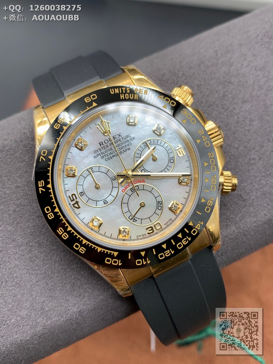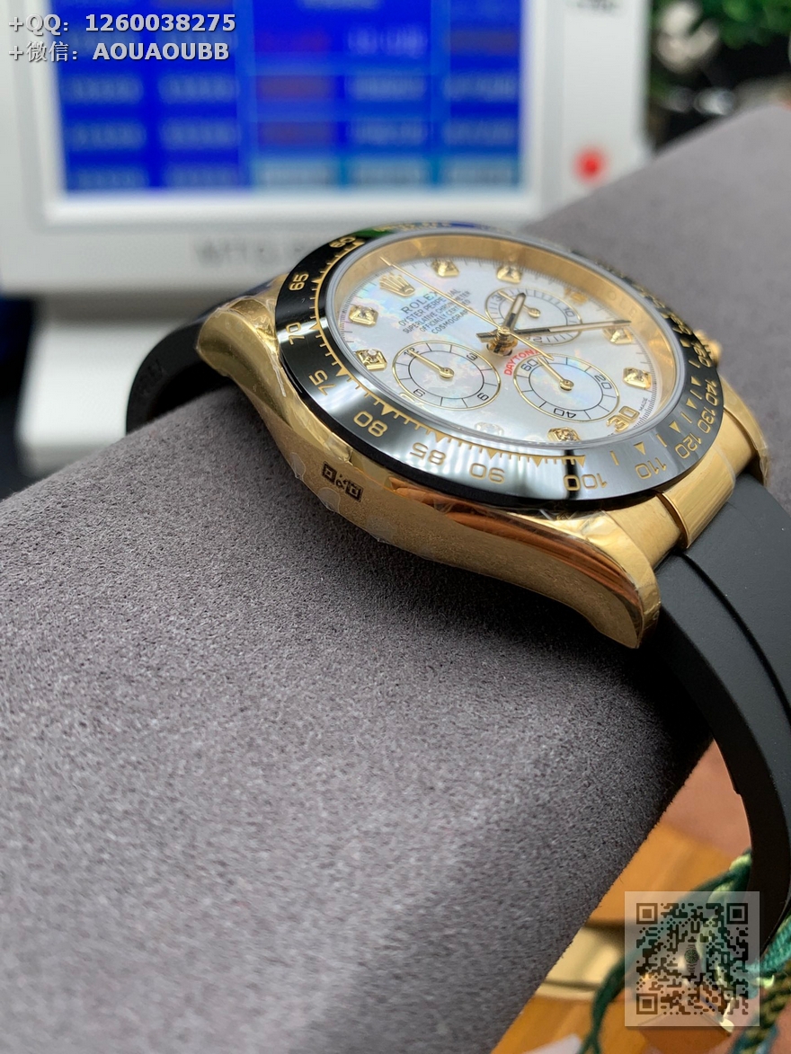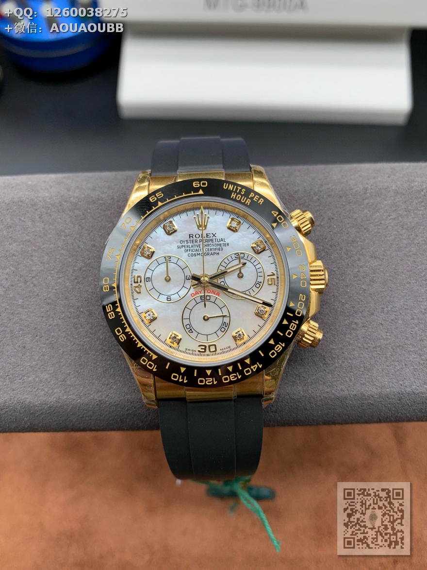 【品牌】劳力士【产品介绍】N厂出品 劳力士宇宙计型迪通拿系列116518LN 贝壳面全自动机械男表【款式】男款【尺寸】直径40mm【表带】橡胶表带【镜面】蓝宝石镜面【机芯】瑞士ETA7750全自动机芯【防水】100米防水【配件】原装盒,说明书,质保卡,吊牌,香港机打发票【品质检测】保证所有手表实物拍摄,所见即所得 , 手表发货前都会有严格检查测试,确保您收到的手表无质量问题