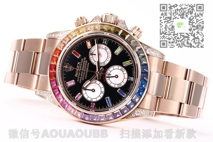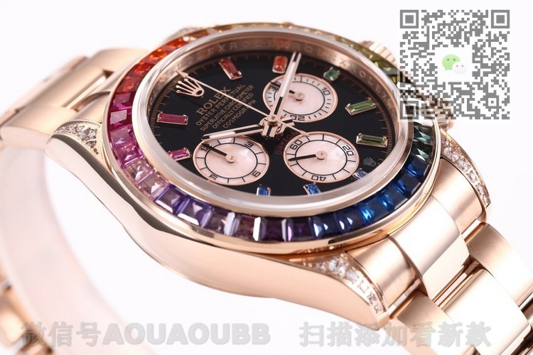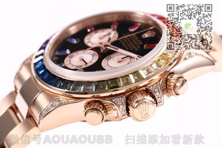 【产品介绍】全新迪通拿彩虹款。型号:116599RBOW-116598RBOW-116595RBOW.彩虹迪通拿一表难求!镶嵌根据原厂颜色渐变过渡最协调的36颗宝石进行优化处理,高度、角度一致,折射效果非常漂亮。字面每个计时盘为光线的不同而发生折射,色泽鲜艳亮丽,独一无二。搭载原装一致Cal.4130机械计时机芯,蓝宝石透彻效果镜面,Rolex专用生耳,钢实心链节蚝式易调节表带,抛光打磨精湛细腻。正品代购包装,款式型号分别对应,最高品质推荐。