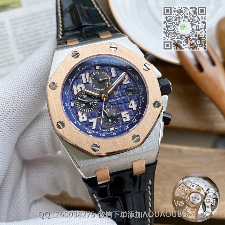 【产品介绍】JF出品爱彼Audemars Piguet 皇家橡树离岸型限量版机械腕表超高品质,超A做工,非市场普通货,货有所值硬汉必备神器经过多道工序的打磨和磨砂处理,终把特有的八角型表圈表达出棱角分明的线条,爱彼入门级腕表强烈推荐!!!耗时以久,把最精至的腕表呈现给各位腕表爱好者,随机送原装表带一副!!!