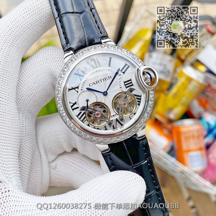 【品牌】卡地亚【产品介绍】卡地亚 Cartier 精品男士腕表,独特双飞轮设计,技艺精湛,独具匠心,尊贵大气,绅士风范【款式】男款【尺寸】直径44mm【表带】意大利牛皮表带【镜面】蓝宝石镜面【机芯】瑞士ETA全自动机芯【防水】50米【配件】原装盒,说明书,质保卡,吊牌,香港机打发票【品质检测】保证所有手表实物拍摄,所见即所得 , 手表发货前都会有严格检查测试,确保您收到的手表无质量问题