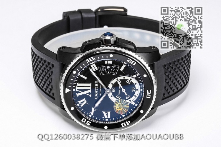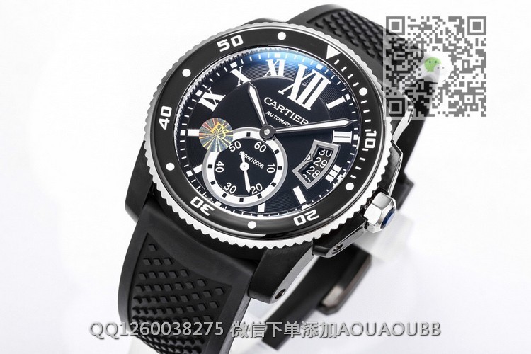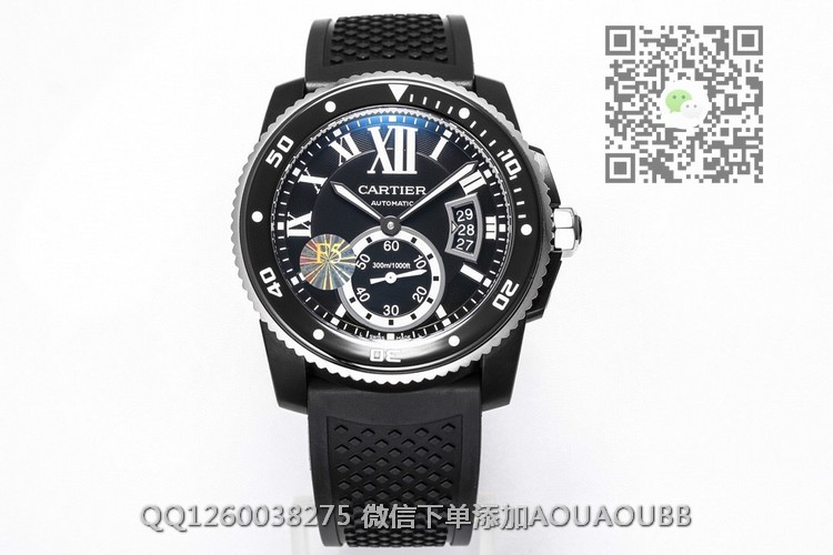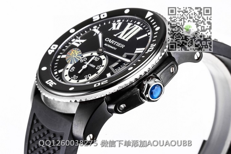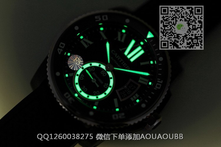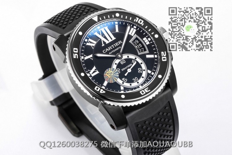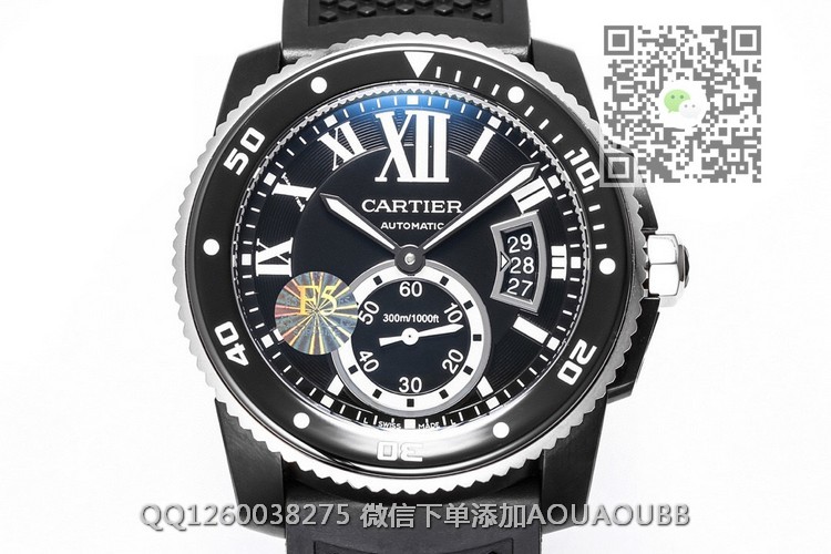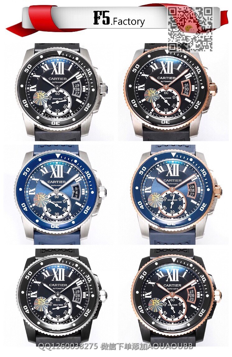 > 卡地亚Cartier > 台湾厂F5最高版本 卡地亚卡利博CALIBRE DE CARTIER潜水系列男士全自动机械腕表 搭载Cal.1904-PS 自动机械机芯 尺寸42x11mm 【品牌】卡地亚【产品介绍】台湾厂F5(市面最新高版本)卡地亚卡利博CALIBRE DE CARTIER潜水系列,腕表堪称卡地亚新一代标志性杰作,316精钢表壳,陶瓷超夜光圈口,超强表盘夜光丁,日历与正品一致黑色底白字体显示,Super LumiNova夜光涂层三角时标,时尚与运动结合的潜水表硬朗而霸气,佩戴能突出男士魅力,彰显气质。【款式】男款【尺寸】42x11mm【表带】进口天然橡胶表带【镜面】蓝宝石镜面【机芯】瑞士Cal.1904-PS 全自动机芯【防水】50米【配件】原装盒,说明书,质保卡,吊牌,香港机打发票【品质检测】保证所有手表实物拍摄,所见即所得 , 手表发货前都会有严格检查测试,确保您收到的手表无质量问题