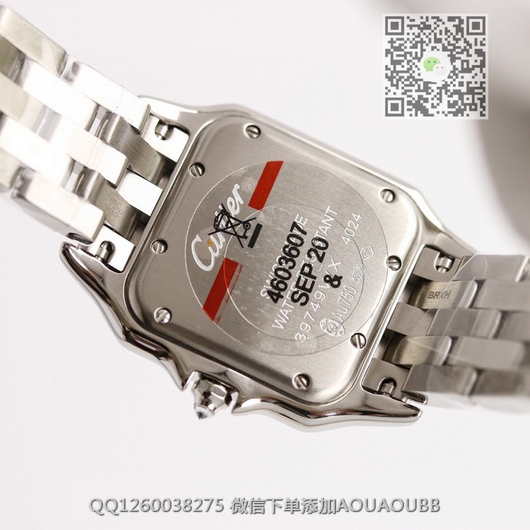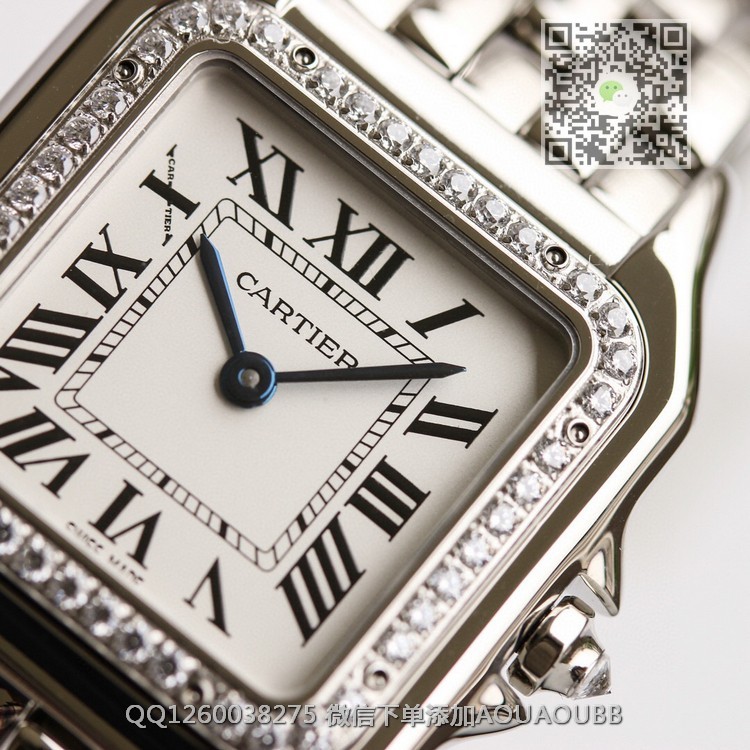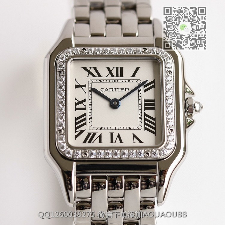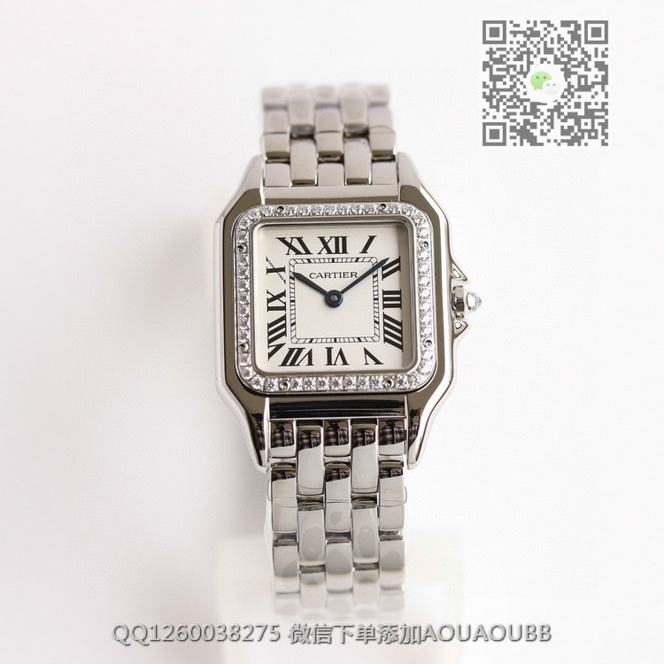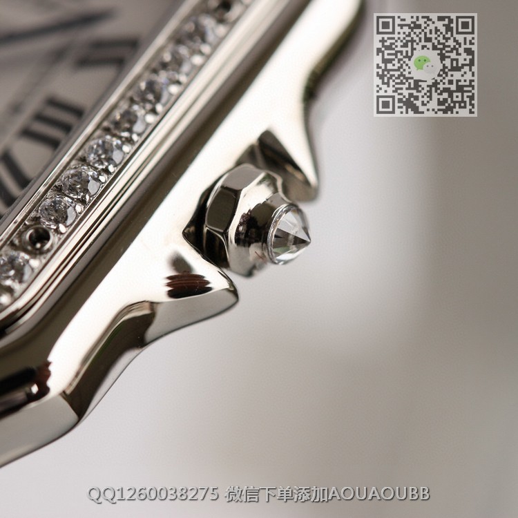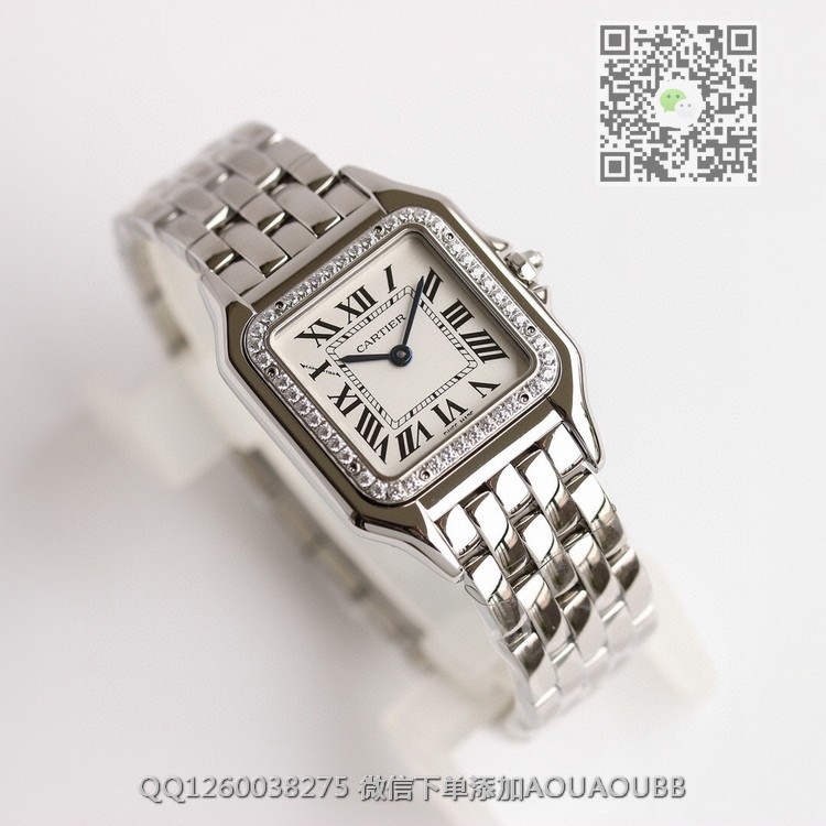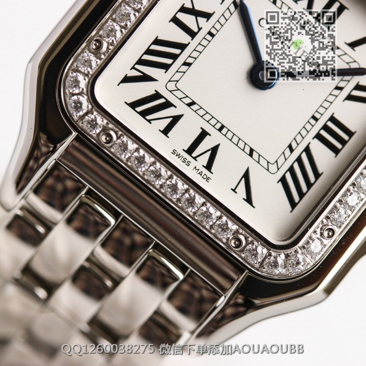 【品牌】卡地亚【产品介绍】GF最强女表系列——卡地亚猎豹Panthère de Cartier。华丽而不羁,是Panthère de Cartier猎豹所传达的美学风格。它线条流畅,魅惑动人,柔软服帖于腕间,宛若在肌肤上翩翩起舞。独特的造型彰显成熟优雅、自信动人的女性形象。GF工厂以精湛技艺,原装开模,打造出与正品无异的精美流线表耳,与表壳一体成型。表冠镶嵌一颗合成蓝色尖晶石,镀银表盘,剑形蓝钢指针【款式】女款【尺寸】27 x 37毫米,厚度6毫米【表带】精钢表带【镜面】蓝宝石镜面【机芯】瑞士朗达石英机芯【防水】50米【配件】原装盒,说明书,质保卡,吊牌,香港机打发票【品质检测】保证所有手表实物拍摄,所见即所得 , 手表发货前都会有严格检查测试,确保您收到的手表无质量问题