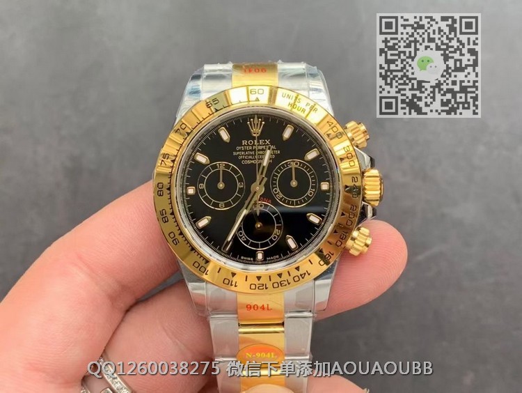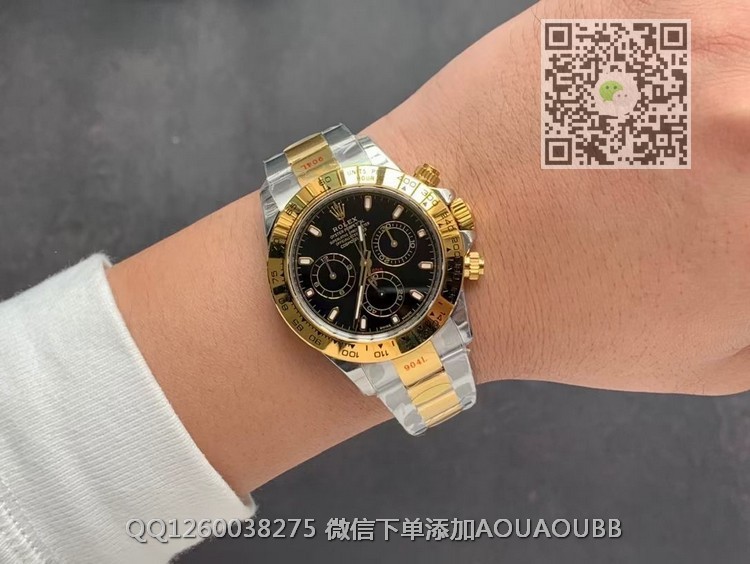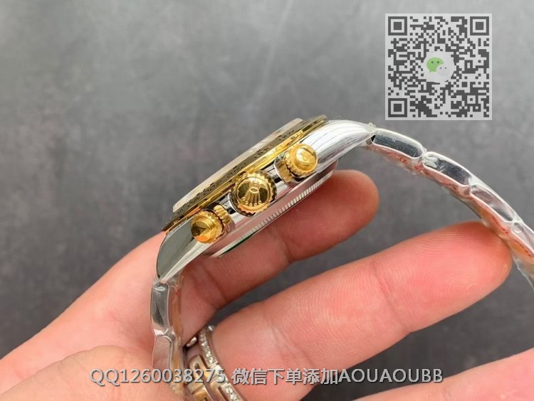 【品牌】劳力士【产品介绍】N厂出品 劳力士宇宙计型迪通拿系列m116503-0004男士全自动机械腕表【款式】男款【尺寸】直径40mm【表带】间金精钢表带【镜面】蓝宝石镜面【机芯】瑞士ETA7750全自动机芯【防水】100米防水【配件】原装盒,说明书,质保卡,吊牌,香港机打发票【品质检测】保证所有手表实物拍摄,所见即所得 , 手表发货前都会有严格检查测试,确保您收到的手表无质量问题