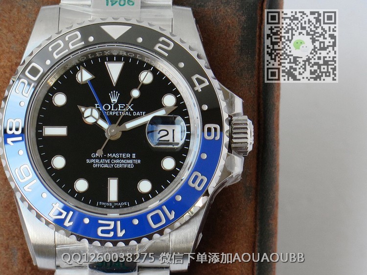 【品牌】劳力士【产品介绍】GS再添新丁——震撼发布劳力士格林尼治型II GMT系列腕表此次推出格林尼治矩阵分别为 116710LN/ 116710BLNR/ m126719blro/ 116719/m126719blro共五款【表壳】腕表尺寸40毫米1.904耗式精钢~还原正品耗式壳套优良结构,打磨一流,防水性能与正品保持一致。2.配备高科技双向旋转陶瓷表圈。3.凭借传统时、分及秒针、三角形箭头24小时指针、双向旋转外圈。可同时显示两个时区【机芯】采用3186蓝游丝一体机芯,调试与上链均吻合原装机芯的方向和手感【表带】精钢表带【镜面】蓝宝石镜面【防水】100米防水【配件】原装盒,说明书,质保卡,吊牌,香港机打发票【品质检测】保证所有手表实物拍摄,所见即所得 , 手表发货前都会有严格检查测试,确保您收到的手表无质量问题