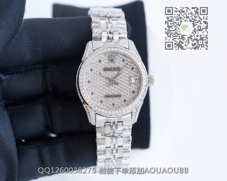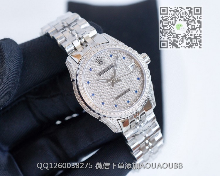 【品牌】劳力士【产品介绍】高端品质精致货 ROLEX满天星rolex满天星日志系列不仅是一个高级腕表系列,更是一个标志,象征劳力士的创造天赋。这革命性的设计体现于表带、表壳和表圈的完美结合。无论何时何地,满天星日志系列将生活的艺术与时间融合一起,彰显传奇色彩。40毫米直径的表壳和表盘密镶炫目美钻,搭载全自动进口机芯完美加持,从容不迫,洒脱华贵的气度和精美本质尽显【款式】男款/女款【尺寸】男士40mm 女士31mm【表带】意大利牛皮表带/精钢表带,表带可以自由选择【镜面】蓝宝石镜面【机芯】进口全自动机芯【防水】50米防水【配件】原装盒,说明书,质保卡,吊牌,香港机打发票【品质检测】保证所有手表实物拍摄,所见即所得 , 手表发货前都会有严格检查测试,确保您收到的手表无质量问题