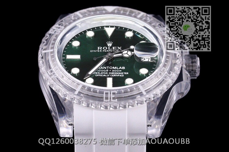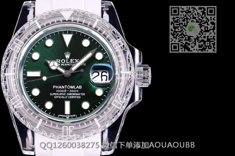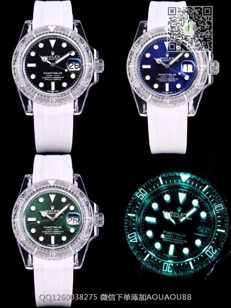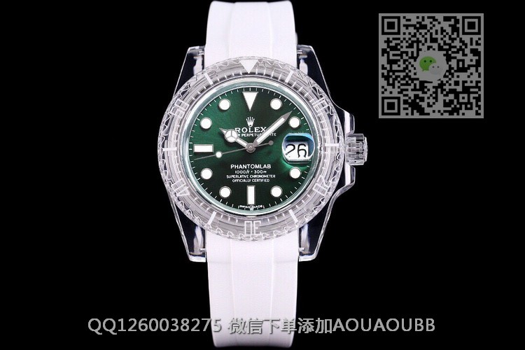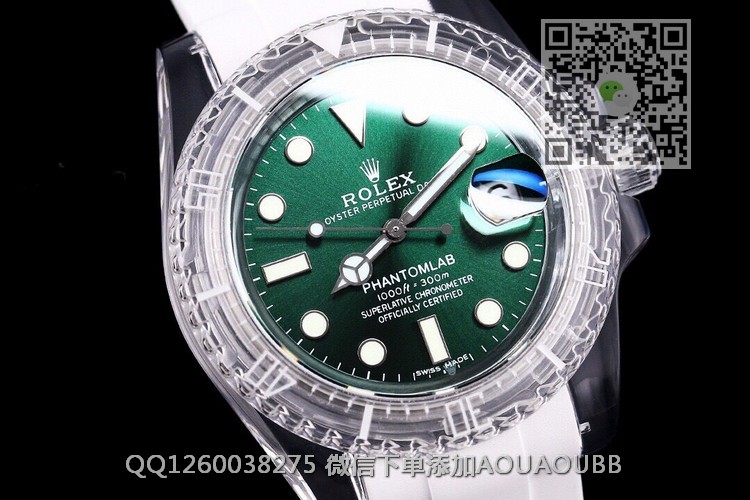 【品牌】劳力士【产品介绍】劳力士Phantomlab改装力作进口水晶《玻璃水晶系列》,结合优雅现代美学和精湛制表工艺,首次推出具有出色硬度和耐磨性的进口水晶《玻璃水晶材质》,质感纯净而通透,白色胶带是:《氟胶》比橡胶高一个档次,外送一条透明胶带:《TPE的材质》,劳力士水鬼整体结构不变的前提下,首次打破了劳力士密底结构,完美诠释了劳力士心之美。全系列采用了瑞士ETA2824全自动机芯,字面,圈口,面丁,针,都采用进口蓝色夜光,蓝宝石玻璃(蓝光放大镜)用匠芯打造奢华的极致!男士休闲女士时尚泡妞神器【款式】男款【尺寸】直径40mm【表带】氟胶表带【镜面】蓝宝石镜面【机芯】瑞士ETA2824全自动机芯【防水】100米防水【配件】原装盒,说明书,质保卡,吊牌,香港机打发票【品质检测】保证所有手表实物拍摄,所见即所得 , 手表发货前都会有严格检查测试,确保您收到的手表无质量问题