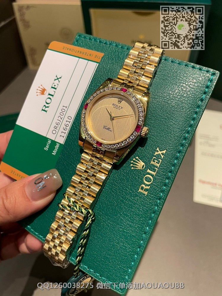 【品牌】劳力士【产品介绍】劳力士日志系列经典女款310 实芯五珠钢带-原装压扣,小红书火爆推荐设计显出独特高贵优雅女神气质!316精钢表壳搭配施华洛世奇水晶钻石,纯手工镶嵌而成,女性气质,高端大气,不显浮华的风格广受成功人士喜爱,逐渐深刻人心,并备受各界女士推重。工艺精湛,糅合尊贵、典雅和独特气质于一身【款式】女款【尺寸】直径31mm【表带】精钢表带【镜面】蓝宝石镜面【机芯】瑞士石英机芯【防水】50米防水【配件】原装盒,说明书,质保卡,吊牌,香港机打发票【品质检测】保证所有手表实物拍摄,所见即所得 , 手表发货前都会有严格检查测试,确保您收到的手表无质量问题