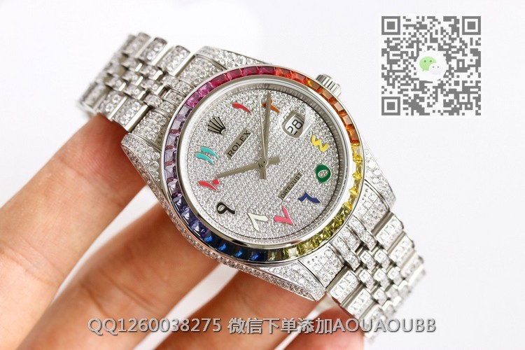 【品牌】劳力士【产品介绍】TW厂日志满钻土豪版劳力士奢华18k纳米技术!整壳同钢带均为镶嵌施华洛世奇水晶钻!(非人为因素5年内掉钻免费补钻)使的灯光下闪耀效果更佳!全新搭配5组满钻钢带!41mm原装尺寸,采用全自动进口机械3255机芯,蓝宝石防刮花玻璃镜面,18k真空电镀永不掉色,送礼最佳奢华推荐!【款式】男款【尺寸】直径41mm【表带】满钻精钢表带【镜面】蓝宝石镜面【机芯】复刻正品3255机芯【防水】100米防水【配件】原装盒,说明书,质保卡,吊牌,香港机打发票【品质检测】保证所有手表实物拍摄,所见即所得 , 手表发货前都会有严格检查测试,确保您收到的手表无质量问题