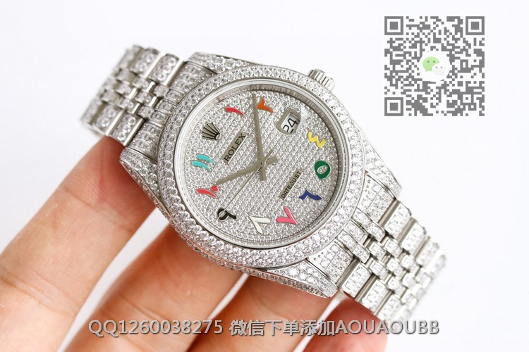 【品牌】劳力士【产品介绍】TW厂日志满钻土豪版劳力士奢华18k纳米技术!整壳同钢带均为镶嵌施华洛世奇水晶钻!(非人为因素5年内掉钻免费补钻)使的灯光下闪耀效果更佳!全新搭配5组满钻钢带!41mm原装尺寸,采用全自动进口机械3255机芯,蓝宝石防刮花玻璃镜面,18k真空电镀永不掉色,送礼最佳奢华推荐!【款式】男款【尺寸】直径41mm【表带】满钻精钢表带【镜面】蓝宝石镜面【机芯】复刻正品3255机芯【防水】100米防水【配件】原装盒,说明书,质保卡,吊牌,香港机打发票【品质检测】保证所有手表实物拍摄,所见即所得 , 手表发货前都会有严格检查测试,确保您收到的手表无质量问题