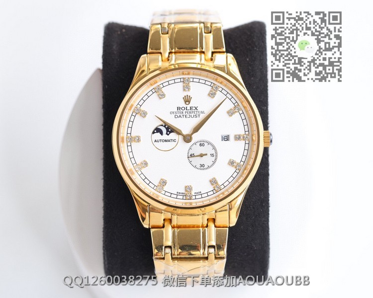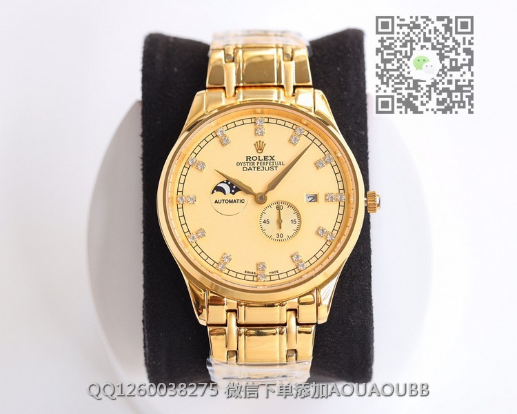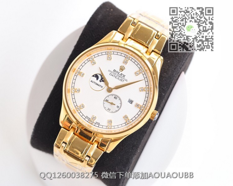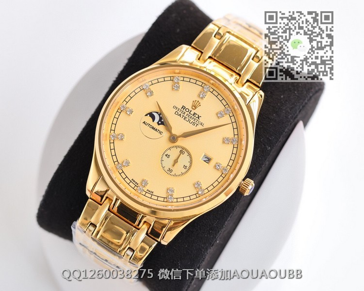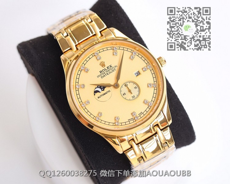 【品牌】劳力士【款式】男款【产品介绍】新款劳力士切利尼系列劳力士首款月相显示腕表(ROLEX),此款腕表是来自《劳力士全球最著名设计师》历经考验,至臻呈现。9字位采用月相显示,5字位显示秒钟,表盘用24粒白宝石做刻度使腕表更加时尚有型腕表采用进口316精钢壳套制做。具有防水性能,卓越的品质,完美的理念屡创佳绩绝对是男人身分地位的象征!可配进口牛皮带【尺寸】直径41mmx10mm【表带】精钢表带,也可以选择牛皮表带【镜面】蓝宝石镜面【机芯】原装进口8219月相功能机芯【防水】50米防水【配件】原装盒,说明书,质保卡,吊牌,香港机打发票【品质检测】保证所有手表实物拍摄,所见即所得 , 手表发货前都会有严格检查测试,确保您收到的手表无质量问题