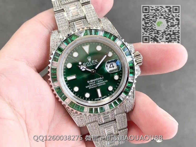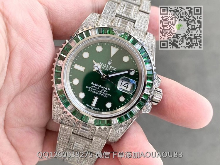 【品牌】劳力士【款式】男款【产品介绍】N厂高端版本,顶级玩家毒物珍品,她奢华至极,新高度——完美还原史上最昂贵的劳力士满天星腕表——潜航者型密镶钻特别款!行走的艺术品,极致奢华身份与地位的象征,气场一目了然!实物惊艳!爱不释手【表壳】腕表尺寸40mm。采用德国顶级904L蚝式钢所制。表圈,表壳,表链都密集镶满最顶级的施华洛世奇美钻。尽量还原正品奢华至极的无敌质感。【表带】采用904L蚝式钢打造,蚝式表带于1930年代末推出,由三排宽大、平整的链节组成,极其坚固,表链全身也整齐缜密的镶满美钻,效果光华四射。【机芯】采用瑞士ETA836全自动机芯,性能极为稳定。【镜面】蓝宝石镜面。超强夜光字面,字面颜色更细腻做出了与正品一致的视觉效果!上手震撼尊贵非凡。您值得拥有!【防水】100米防水【配件】原装盒,说明书,质保卡,吊牌,香港机打发票【品质检测】保证所有手表实物拍摄,所见即所得 , 手表发货前都会有严格检查测试,确保您收到的手表无质量问题