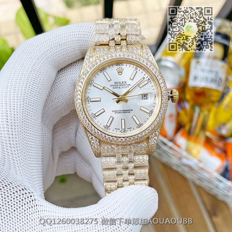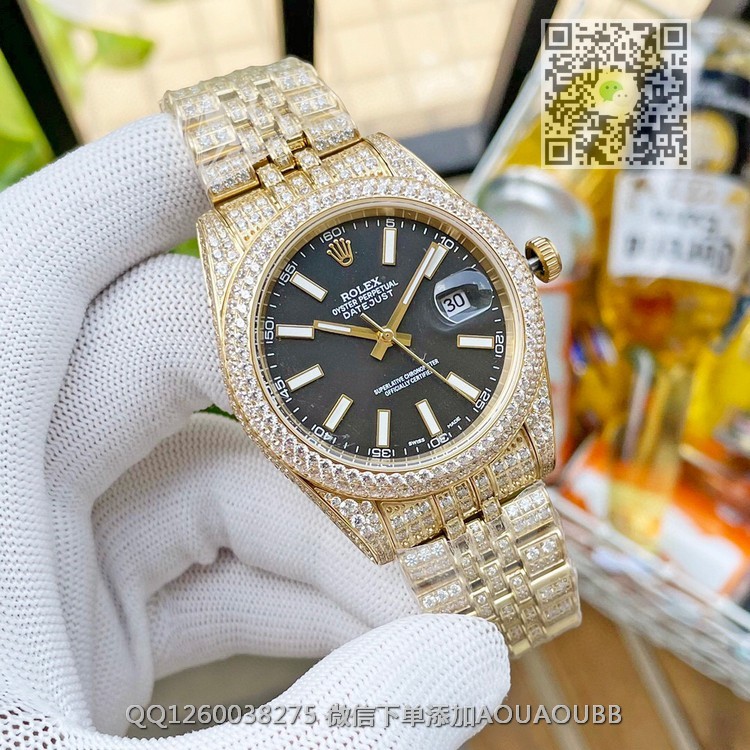 【品牌】劳力士【产品介绍】高清实拍复刻版日志满钻土豪版劳力士奢华18k纳米技术!5组满钻原装表带!2300+颗AAA锆石精心打造!认准镶嵌工艺非市面上贴钻普通工艺!!(非人为因素5年内掉钻免费补钻)使的灯光下闪耀效果更佳!送礼最佳!全新搭配5组满钻钢带!41mm原装尺寸,采用全自动进口3255机芯蓝宝石防刮花玻璃镜面,18k真空电镀永不掉色,送礼最佳奢华推荐!【款式】男款【尺寸】直径41mm【表带】满钻精钢表带【镜面】蓝宝石镜面【机芯】3255机芯【防水】100米防水【配件】原装盒,说明书,质保卡,吊牌,香港机打发票【品质检测】保证所有手表实物拍摄,所见即所得 , 手表发货前都会有严格检查测试,确保您收到的手表无质量问题