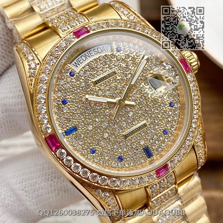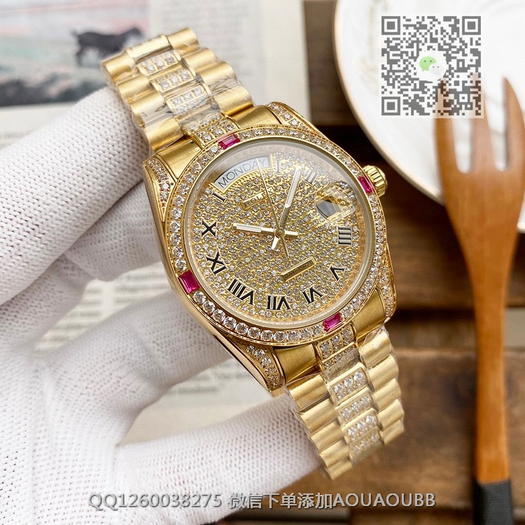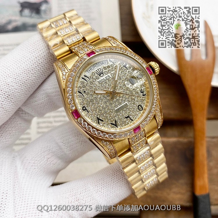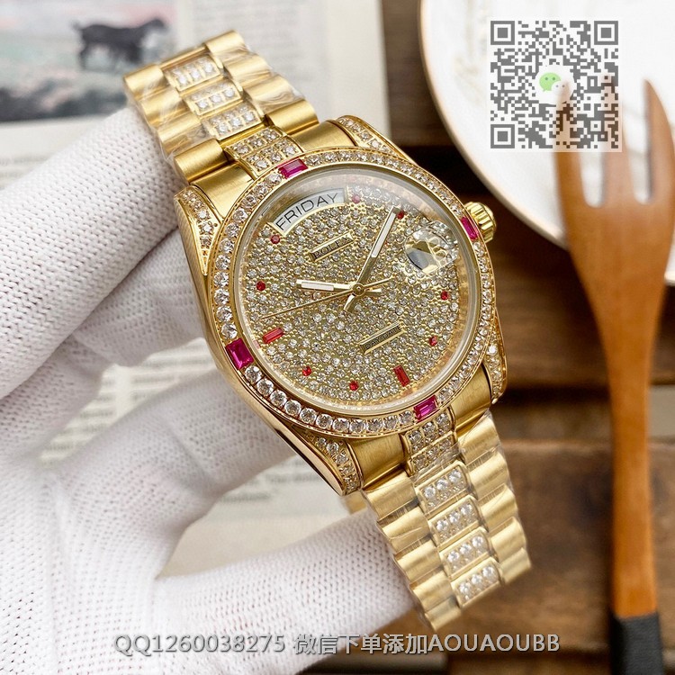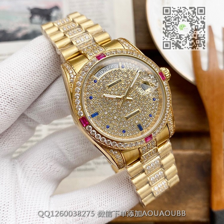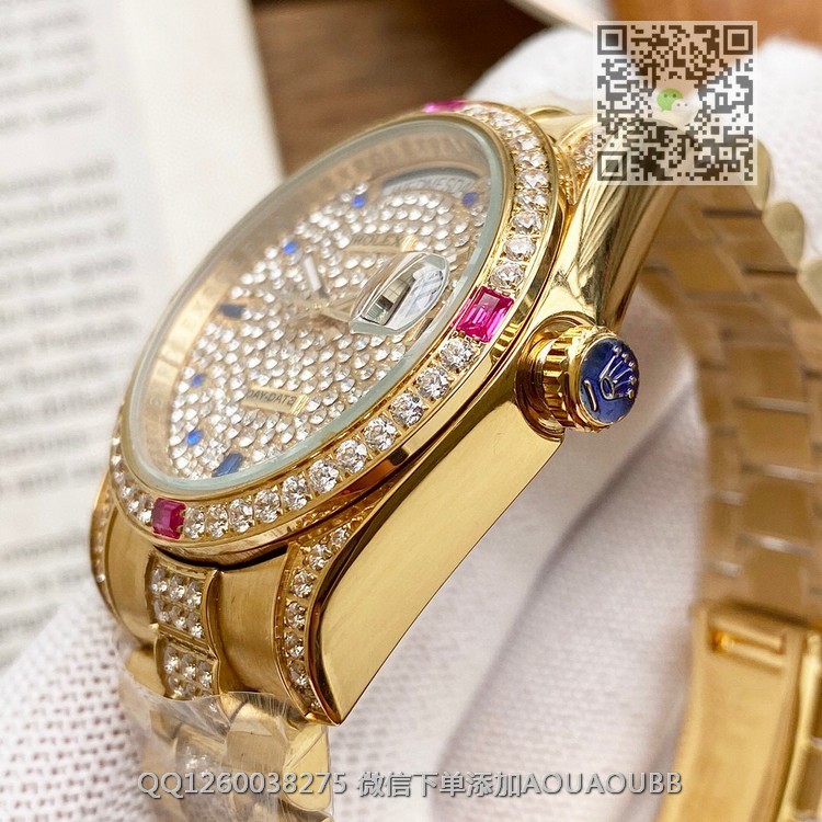 【品牌】劳力士【产品介绍】劳力士ROLEX满天星腕表904精钢打造,密镶顶级施华洛世奇美钻,奢华品质的诠释,璀璨夺目,魅力绽放。表壳表链全镶满美钻,金光闪闪【款式】男款【尺寸】直径36mm【表带】精钢表带【镜面】蓝宝石镜面【机芯】瑞士ETA2836机芯【防水】100米防水【配件】原装盒,说明书,质保卡,吊牌,香港机打发票【品质检测】保证所有手表实物拍摄,所见即所得 , 手表发货前都会有严格检查测试,确保您收到的手表无质量问题