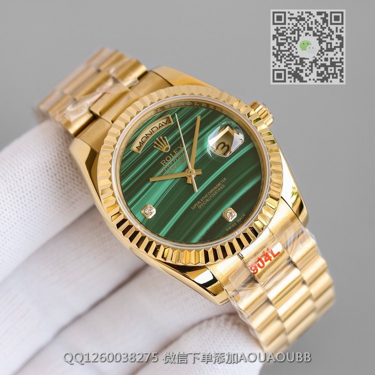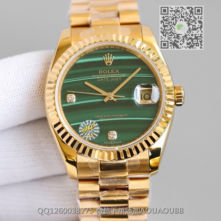 【品牌】劳力士【产品介绍】恒动劳力士日志36孔雀石骚绿重磅来袭!劳力士,星期日历型,稀有孔雀石盘面,大能同款,36直径大小,大三针,温润柔美,儒雅尊贵!天然孔雀石呈现浓绿,翠绿的光泽,却是一种高贵之石,有种独一无二的高雅气质。 孔雀石象征高贵象征好运,孔雀石象征着好运和希望,可以指引迷途与梦想。让每一位逐梦想的年轻人对未来的生活倍添信心,开启每一天的崭新旅程。 《重要注明:每张孔雀石字面的纹路不一自然形成》【款式】男款【尺寸】直径36mm【表带】精钢表带【镜面】蓝宝石镜面【机芯】瑞士ETA2836全自动机芯【防水】100米防水【配件】原装盒,说明书,质保卡,吊牌,香港机打发票【品质检测】保证所有手表实物拍摄,所见即所得 , 手表发货前都会有严格检查测试,确保您收到的手表无质量问题