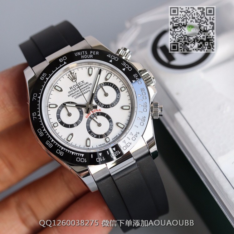 【品牌】劳力士【产品介绍】顶级复刻版本 劳力士宇宙计型迪通拿系列全自动机械计时腕表 功能计时跑秒跟正品一致 搭配旋转表冠,旋入式三扣锁三重防水系统 腕表搭配折叠式表扣,且表扣具有微调装置,可以调到非常的贴合手腕折叠扣超强夜光【款式】男款【尺寸】直径40mm【表带】橡胶表带【镜面】蓝宝石镜面【机芯】瑞士ETA7750全自动机芯【防水】100米防水【配件】原装盒,说明书,质保卡,吊牌,香港机打发票【品质检测】保证所有手表实物拍摄,所见即所得 , 手表发货前都会有严格检查测试,确保您收到的手表无质量问题