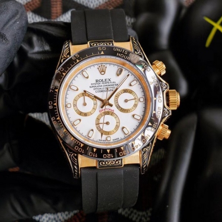 【品牌】劳力士【产品介绍】劳力士复古雕花迪通拿系列男士全自动机械腕表 佛罗伦萨表壳表扣雕花工艺独特的个性定制型腕表【款式】男款【尺寸】40mmx13mm【表带】橡胶表带【镜面】蓝宝石镜面【机芯】瑞士ETA全自动机芯【防水】50米防水【配件】原装盒,说明书,质保卡,吊牌,香港机打发票【品质检测】保证所有手表实物拍摄,所见即所得 , 手表发货前都会有严格检查测试,确保您收到的手表无质量问题