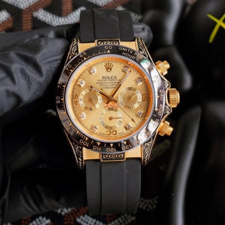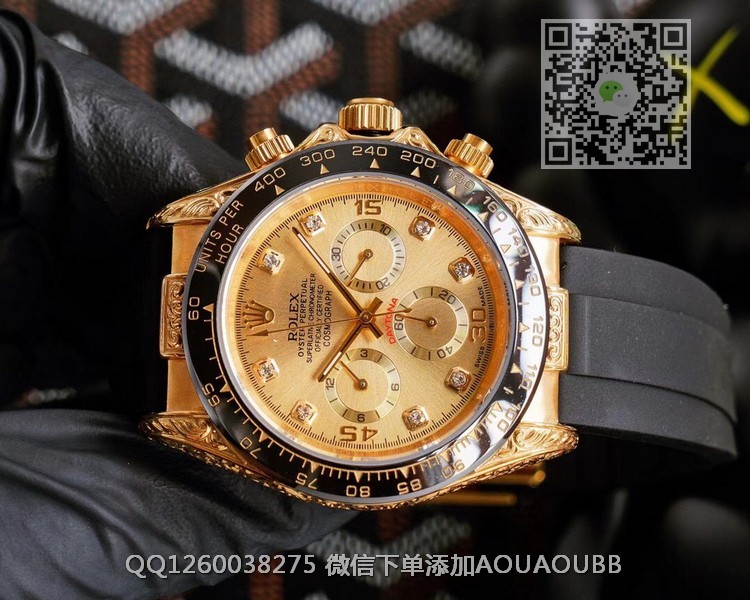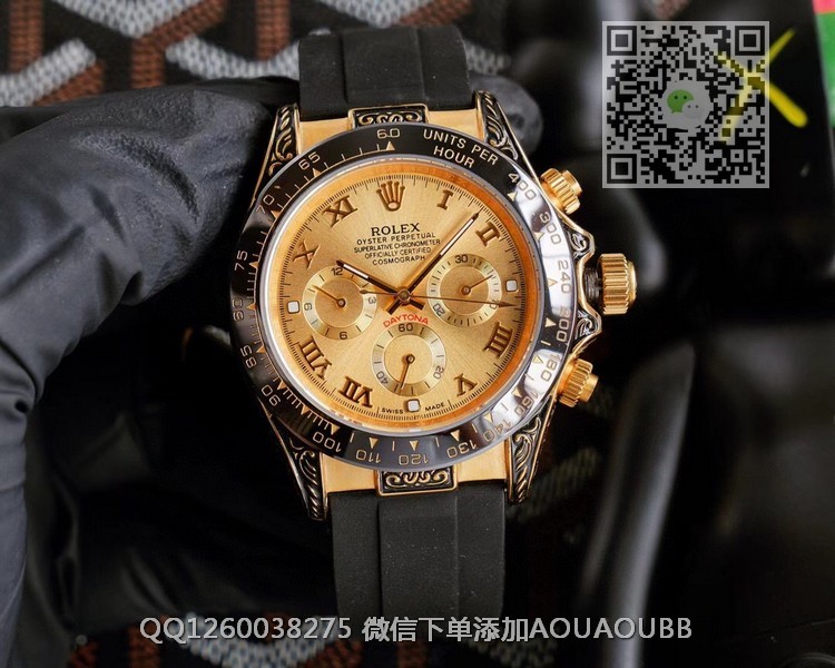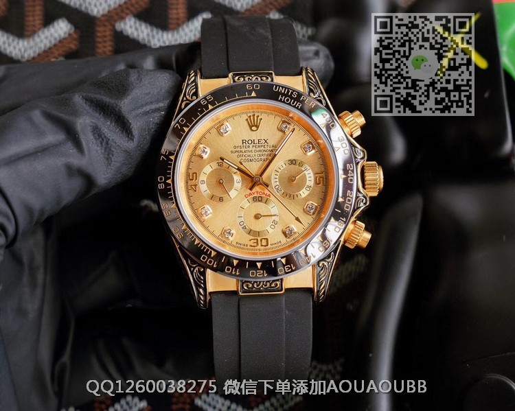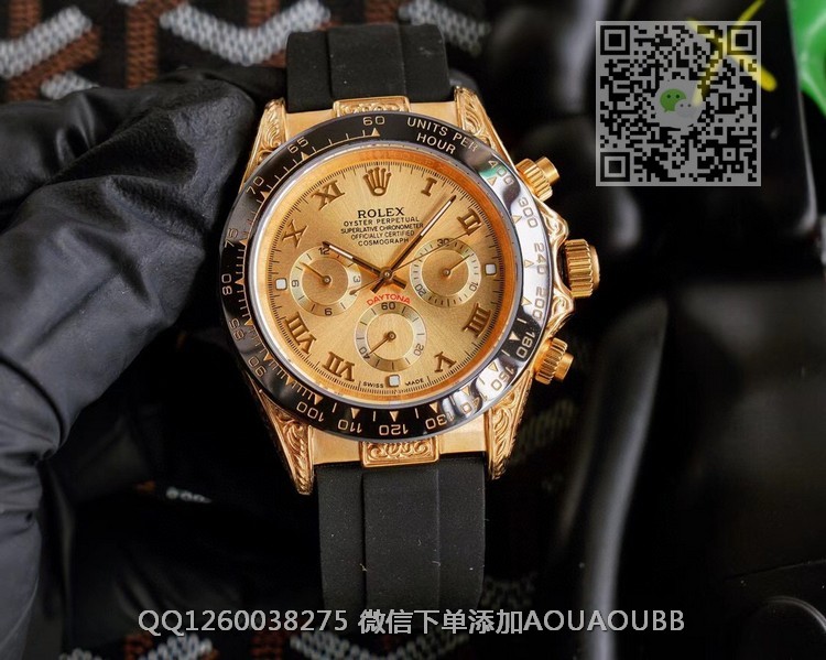 【品牌】劳力士【产品介绍】劳力士复古雕花迪通拿系列男士全自动机械腕表 佛罗伦萨表壳表扣雕花工艺独特的个性定制型腕表【款式】男款【尺寸】40mmx13mm【表带】橡胶表带【镜面】蓝宝石镜面【机芯】瑞士ETA全自动机芯【防水】50米防水【配件】原装盒,说明书,质保卡,吊牌,香港机打发票【品质检测】保证所有手表实物拍摄,所见即所得 , 手表发货前都会有严格检查测试,确保您收到的手表无质量问题
