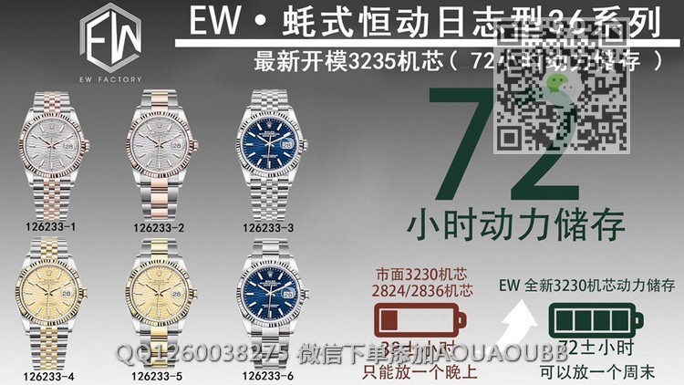 【品牌】劳力士【产品介绍】EW2021新款劳力士蚝式日志型36系列,搭配劳力士全新3235机芯;几乎与原装一致厚度11.7mm:表径36mm;打磨字钉;顶级瑞士冰蓝色夜,与劳力士原厂夜光一致;超级904钢材质;蓝宝石玻璃;顶级做工,每条表带与表耳完美契合,给予手腕最高的舒适度;每个极致的细节都是EW工厂匠心开发的诚意【款式】男款【尺寸】36mmx11.7mm【表带】904L精钢表带【镜面】蓝宝石镜面【机芯】3235机芯【防水】100米防水【配件】原装盒,说明书,质保卡,吊牌,香港机打发票【品质检测】保证所有手表实物拍摄,所见即所得 , 手表发货前都会有严格检查测试,确保您收到的手表无质量问题