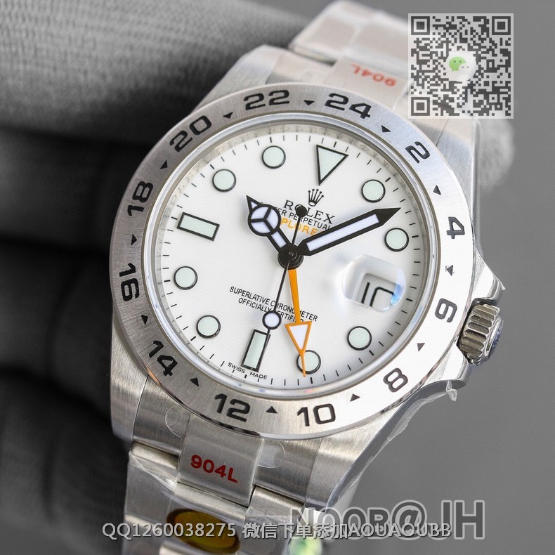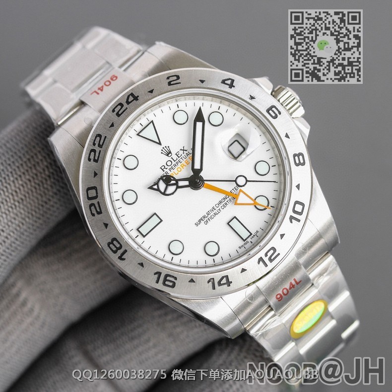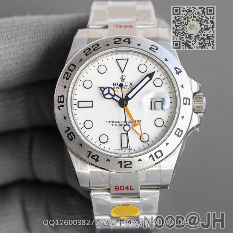 【品牌】劳力士【产品介绍】N厂终极版本 劳力士探险家型系列m216570-0001 白盘男士全自动机械腕表,直径主要升级的地方为:1、和原装一样橙色gmt指针顺序在分针和时针中间,由上至下的针序为秒针、分针、GMT橙色指针、时针。2、其次和正品一样通过快跳时针调整日历。3、搭载了原版3187机芯。【款式】男款【尺寸】直径42mm【表带】904L精钢表带【镜面】蓝宝石镜面【机芯】劳力士cal.3187机芯【防水】100米防水【配件】原装盒,说明书,质保卡,吊牌,香港机打发票【品质检测】保证所有手表实物拍摄,所见即所得 , 手表发货前都会有严格检查测试,确保您收到的手表无质量问题