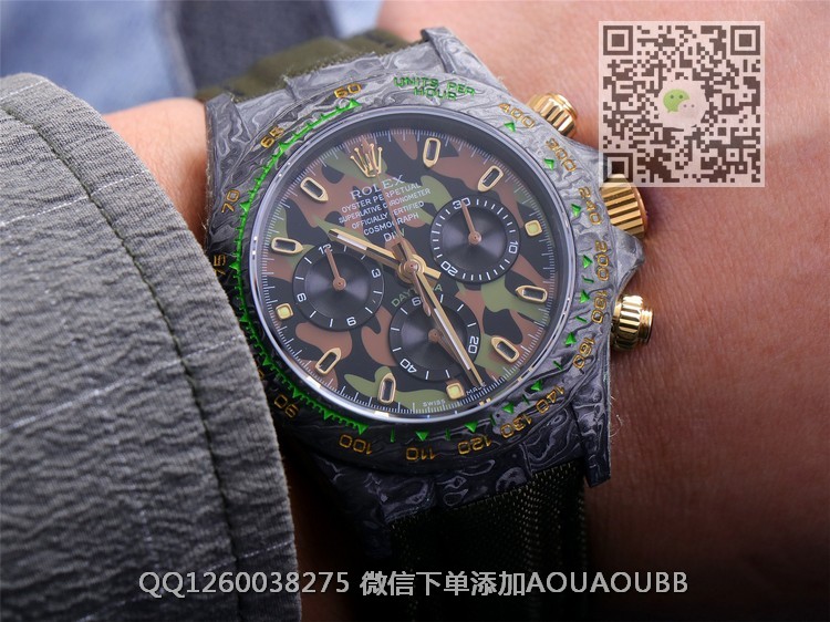 【品牌】劳力士【款式】男款【产品介绍】JH新品匠心合一追梦不止宇宙计时迪通拿系列之碳纤维定制版,腕表不仅佩戴轻便,外表坚硬。且每一只腕表都拥有独一无二的碳纤花纹【表壳】直径40mm【表带】表带采用人工纤维编织带所制,透气舒适,质地柔软【机芯】采用精准而成熟的ETA7750机芯,完美实现正品强大功能【镜面】蓝宝石镜面【防水】50米防水【配件】原装盒,说明书,质保卡,吊牌,香港机打发票JH匠心铸造碳纤维劳力士的独特风采。市场独家采用日本进口原料用纳米技术打造全碳纤维表壳,壳身不会存在细孔,圈口包括底盖均采用高复合碳纤维和超强夜光粉所打造。细节之处更是经过手工倒角抛光所制。质感非凡。【品质检测】保证所有手表实物拍摄,所见即所得 , 手表发货前都会有严格检查测试,确保您收到的手表无质量问题