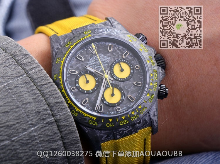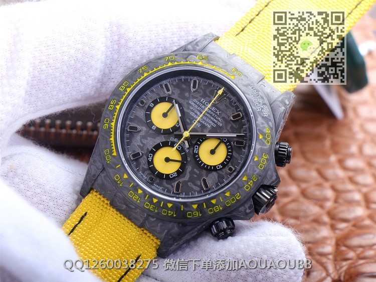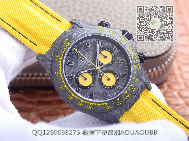【品牌】劳力士【款式】男款【产品介绍】JH新品匠心合一追梦不止宇宙计时迪通拿系列之碳纤维定制版,腕表不仅佩戴轻便,外表坚硬。且每一只腕表都拥有独一无二的碳纤花纹【表壳】直径40mm【表带】表带采用人工纤维编织带所制,透气舒适,质地柔软【机芯】采用精准而成熟的ETA7750机芯,完美实现正品强大功能【镜面】蓝宝石镜面【防水】50米防水【配件】原装盒,说明书,质保卡,吊牌,香港机打发票JH匠心铸造碳纤维劳力士的独特风采。市场独家采用日本进口原料用纳米技术打造全碳纤维表壳,壳身不会存在细孔,圈口包括底盖均采用高复合碳纤维和超强夜光粉所打造。细节之处更是经过手工倒角抛光所制。质感非凡。【品质检测】保证所有手表实物拍摄,所见即所得 , 手表发货前都会有严格检查测试,确保您收到的手表无质量问题