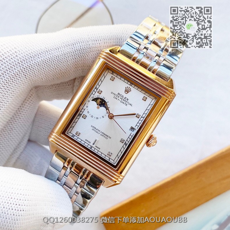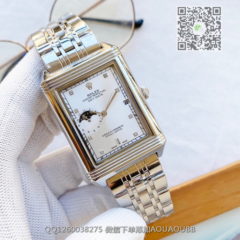 【品牌】劳力士【产品介绍】劳力士典藏系列男士方形全自动机械腕表,三针半搭载月相设计,3点位置日历显示 9点位置24小时月相显示,技艺精湛,独具匠心,尊贵大气,绅士风范【款式】男款【尺寸】34x44mm【表带】精钢表带【镜面】蓝宝石镜面【机芯】进口全自动机械机芯【防水】50米防水【配件】原装盒,说明书,质保卡,吊牌,香港机打发票【品质检测】保证所有手表实物拍摄,所见即所得 , 手表发货前都会有严格检查测试,确保您收到的手表无质量问题