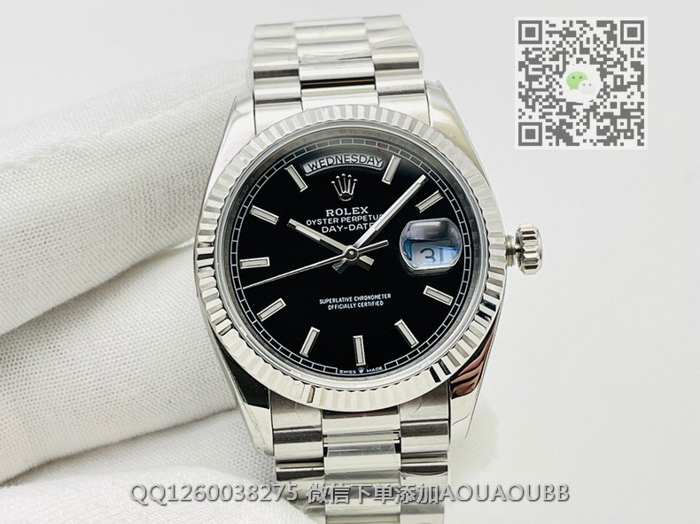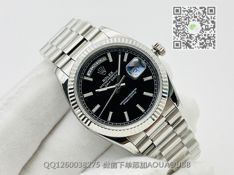 【品牌】劳力士【产品介绍】N厂出品劳力士星期日历型系列118239 黑盘男士全自动机械腕表 表壳表带升级904L精钢【款式】男款【尺寸】直径36mm【表带】精钢表带【镜面】蓝宝石镜面【机芯】瑞士ETA2836-2机芯【防水】100米防水【配件】原装盒,说明书,质保卡,吊牌,香港机打发票【品质检测】保证所有手表实物拍摄,所见即所得 , 手表发货前都会有严格检查测试,确保您收到的手表无质量问题
