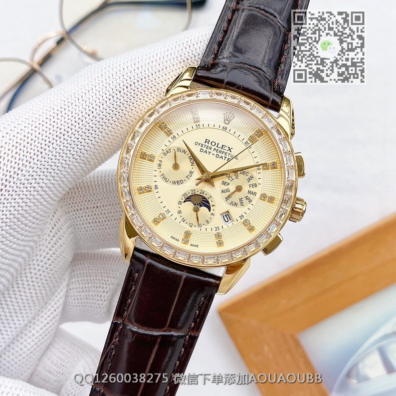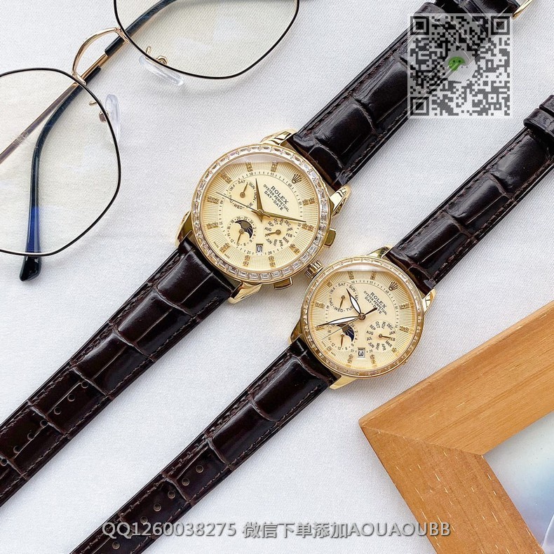 【品牌】劳力士【产品介绍】劳力士复杂功能计时系列上市 ROLEX 情侣对表!小红书爆款多功能鑫腕表正式上市!搭载原装进口9100月相功能机芯机械表走时精准零返修!表盘上采用罗马施华洛水钻作为刻度更显示出这款腕表的华贵气质!皮带采用进口方形鳞纹牛皮表带,表镜采用蓝宝石镜面,透视底盖!直径男款41毫米,厚度10毫米,女款35毫米,厚度10毫米!腕表功能汇集星期/月份/日期等功能于一身,最佳男女腕表真正的富家女标配!为高端腕表的代表之作尊贵彰显之美誉细节之处透露女士高贵,品位十分!实物拍摄品质如一!【款式】男款/女款【尺寸】男士41mmx11mm/女士35mmx11mm【表带】精钢表带【镜面】蓝宝石镜面【机芯】原装进口9100全自动机芯【防水】50米防水【配件】原装盒,说明书,质保卡,吊牌,香港机打发票【品质检测】保证所有手表实物拍摄,所见即所得 , 手表发货前都会有严格检查测试,确保您收到的手表无质量问题