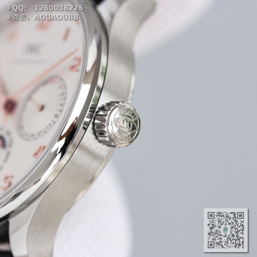 【产品介绍】GE工厂新品隆重登场——最新款万国葡萄牙系列腕表,集时间、日期、星期、闰年、真月相和月份于一身,完美复刻正品一切功能,正所谓功能卓越,大器晚成,有请各路表友品鉴支持。【表壳】腕表尺寸42.mmX13mm,厚度适中,表壳采用CNC顶级工艺打磨,线条清晰流畅,效果保持了高级水准。前后蓝宝石镜面,且前侧玻璃镀膜通透度达到极致,【机芯】采用日本原装9015改装成正品Cal.82650机芯,特别是机芯摆轮位置花费了机芯厂工程师大量的时间来改动,实现了摆轮位置和正品一致,通过大量的尝试和数据分析,实现结构与Cal.82650机芯能有99%的吻合度,调试方法和手感百分百同步。【表盘】 新表布局由3个小表盘组成,视觉上更为紧凑,也提升了阅读性——3点为清晰易读的日历盘,6点整合月份盘和月相显示,月相精准,月相盘为一个月走一圈,功能同步正品,9点的星期盘嵌有一个精巧的闰年视窗,通过L/1/2/3提示闰年,温馨提示闰年功能是目前市场独一无二的功能,GE工厂不惜成本还原正品风貌,给大家带来最接近正品的无敌体验。【表带扣】意大利小牛皮搭配IWC原装级别折叠扣和针扣