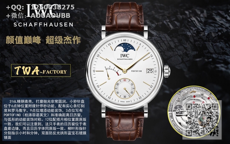 【产品介绍】TWA新品 颜值巅峰 IWC旗下最耀眼的明星,万国长动能月相专家。全新的柏涛菲诺系列IW516409透底腕表。
