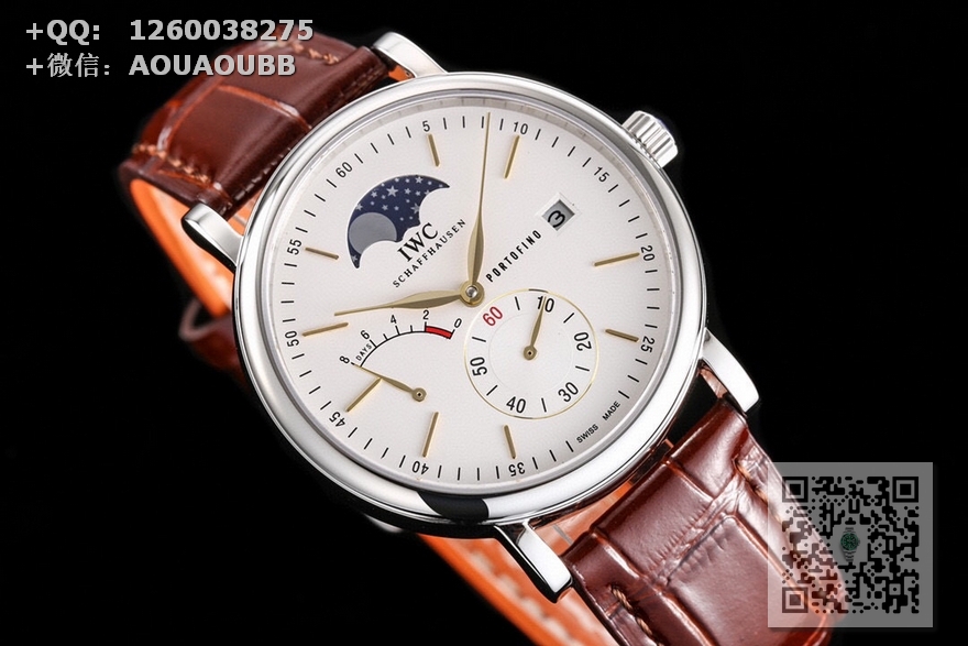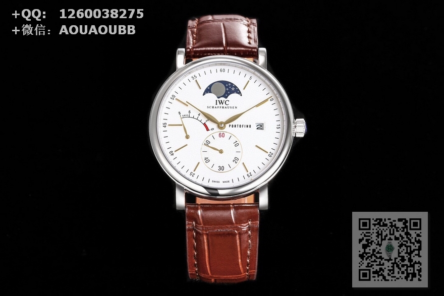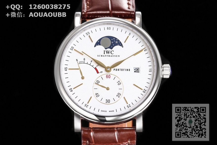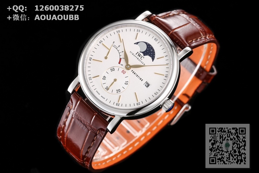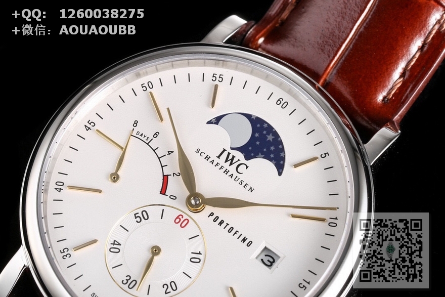 【表壳】316L精钢表壳,打磨抛光非常圆润。小秒针盘位于6点钟位置附拨针停秒功能,配有实心条钉刻度和罗马数字,9点位增添动能装饰,3点位写有PORTOFINO(柏涛菲诺英文)和准确距离日历窗,与弧形的动能装饰对称。12位配搭月相位置跟原版一致。我们可以注意到,这只手表的日历窗位于表盘最边缘,而且日历字体同原版一致。柳叶形指针分别指示小时和分钟,双面防反光拱形蓝宝石镀膜镜面 【表带】意大利小牛皮  【机芯】自主研制自动上链机械机芯,机芯稳定,走时准。