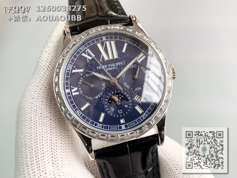 【品牌】百达翡丽【产品介绍】最高版本 百达翡丽Patek Philippe 复杂系列六针男表爆款 多功能腕表!搭载原装进口9100星期月份月相动能功能机芯机械表!表盘上采用经典独家内影夜光罗马 作为刻度更显示出这款腕表的华贵气质皮带采用进口方形鳞纹牛皮表带!表镜采用双卜蓝宝石镜面!透视底盖!直径41毫米,厚度10毫米!腕表功能汇集星期/月份/日期等功能于一身,最佳男士商务腕表真正的标配!为高端腕表的代表之作!荣誉出品 尊贵彰显之美誉细节之处透露男士高贵,品位十分,匠心巨制 大气媲美原装货!表里如一 独具匠心!️请认准独家品质。【款式】男款【尺寸】直径41mm【表带】意大利牛皮表带【镜面】蓝宝石镜面【机芯】原装进口9100全自动机芯【防水】50米【配件】原装盒,说明书,质保卡,吊牌,香港机打发票【品质检测】保证所有手表实物拍摄,所见即所得 , 手表发货前都会有严格检查测试,确保您收到的手表无质量问题