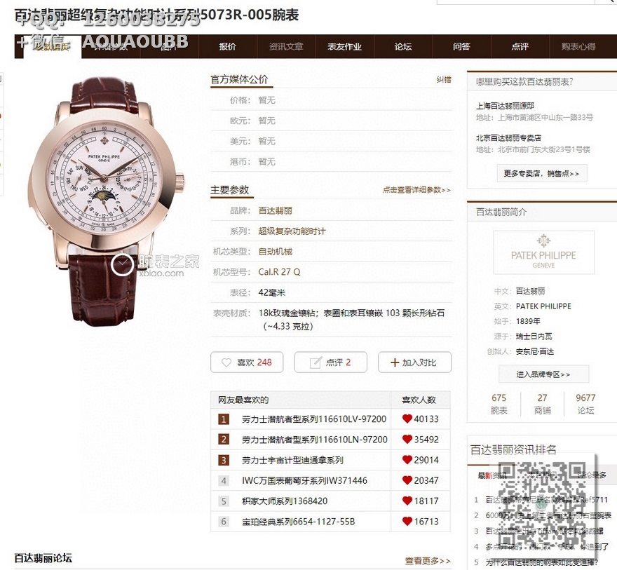 【产品介绍】新品到货!重金打造百达菲丽超级复杂功能系列5073P_010腕表。用心之作,细节方面:
