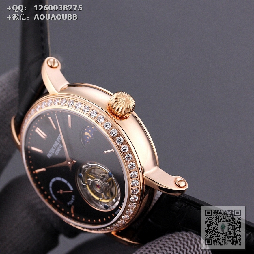 【产品介绍】百达翡丽 (GMT显示)月相星辰顶级手动同轴陀飞轮机芯 原装蝴蝶扣 手动上链陀飞轮机械!雕花透底,316精钢鑫表壳 烧钢蓝指针,直径42mm.厚度13mm,42小時储蓄动力双面蓝宝石玻璃