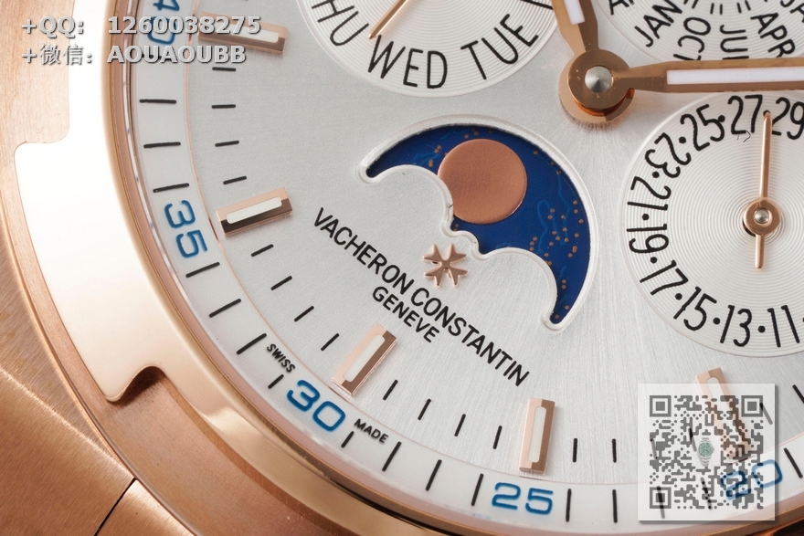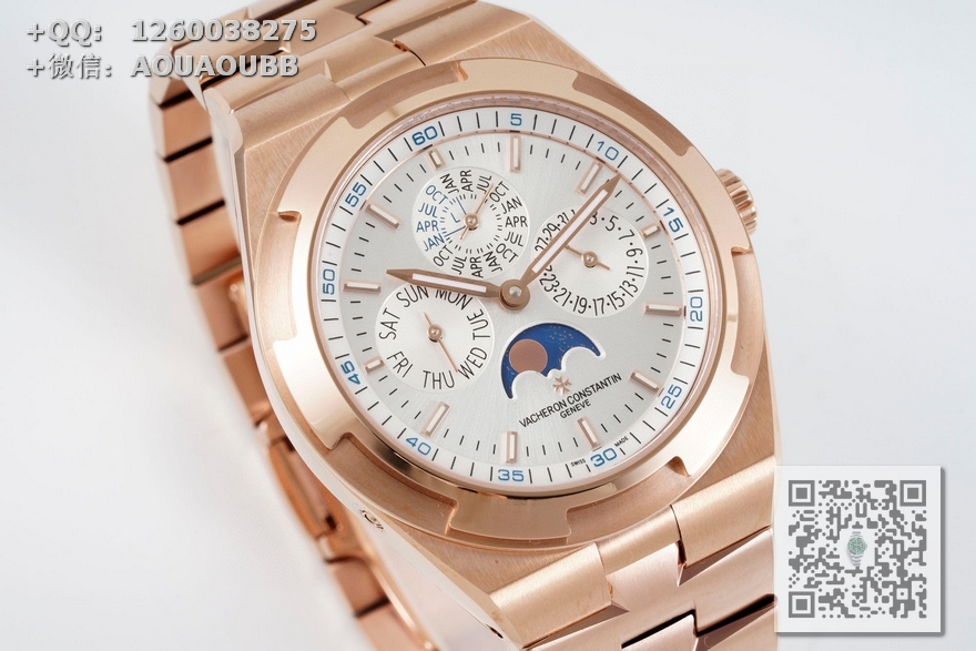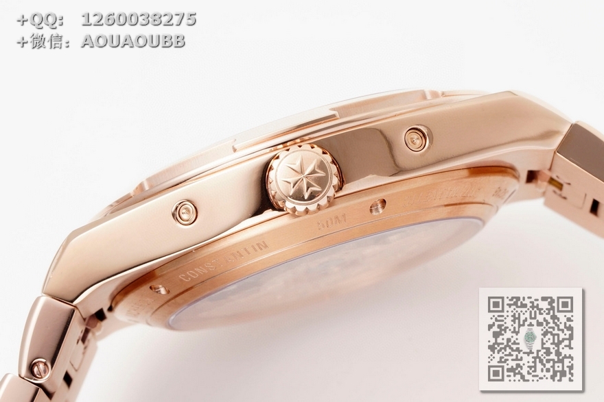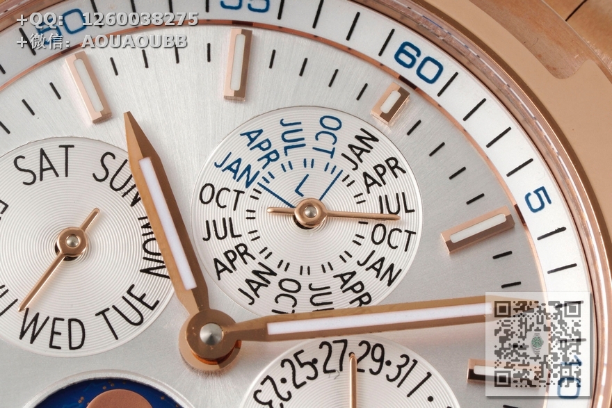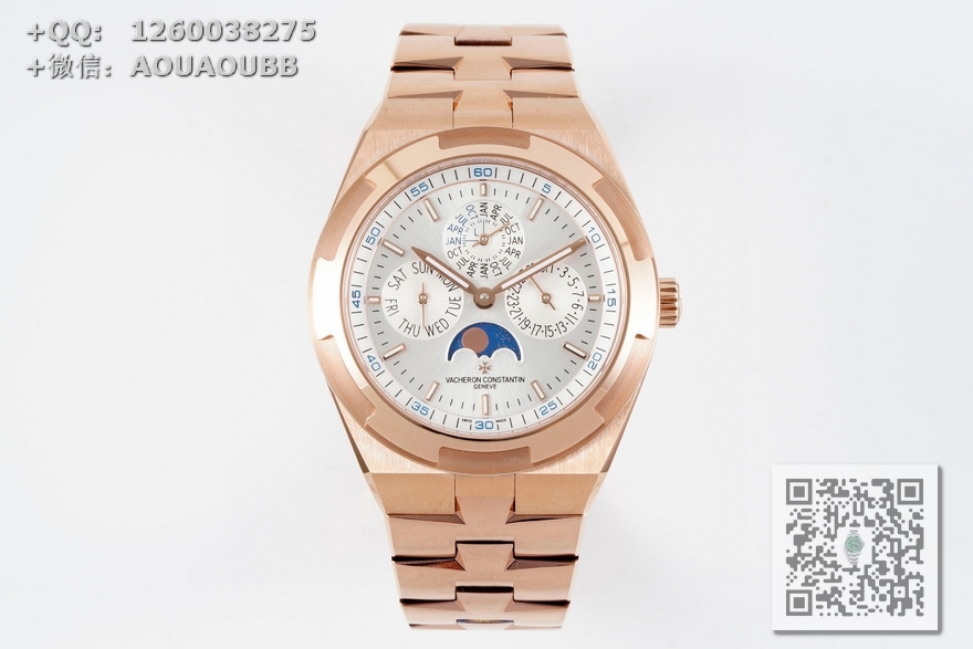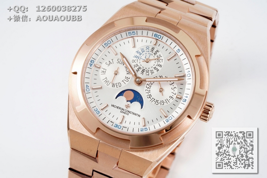 【产品介绍】PPF最新顶级版本 Overseas纵横四海4300V系列万年历腕表 腕表采用直径41.5毫米的表壳,搭载自动上链机械机芯—— 1120 QP/1超薄机芯,该机芯配备万年历和月相显示。(9字位星期、3字位日期、12字位月份) 经旭日纹缎面拉丝处理的金质表盘 以蜗形纹装饰的小表盘清晰易读 搭配造价不菲的指针相得益彰 每一枚腕表都可以配戴一键快拆式钢带 胶带 皮带 欢迎鉴赏