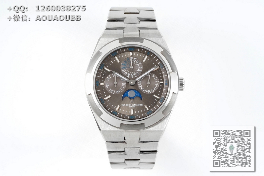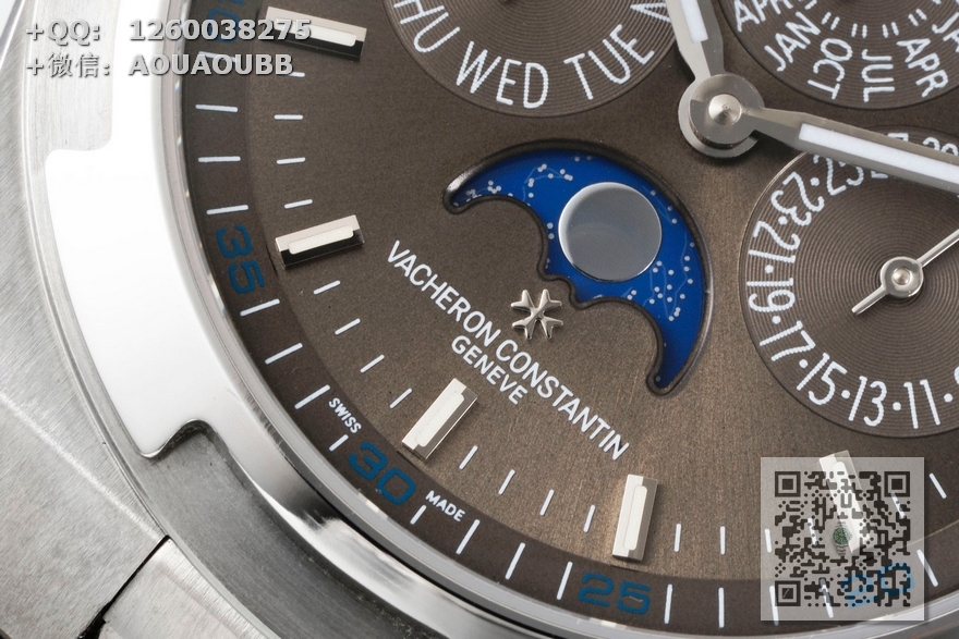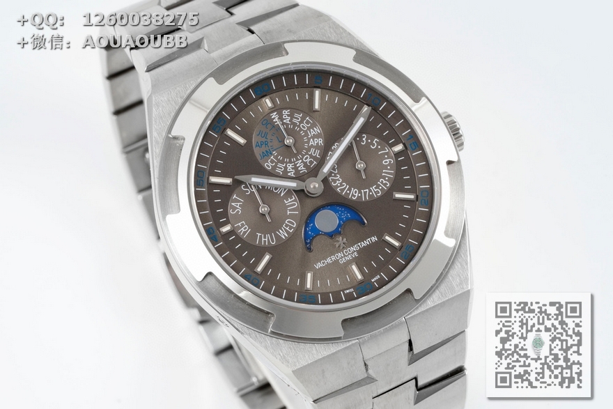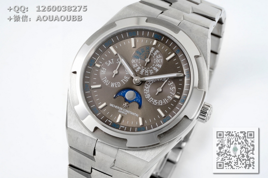 【产品介绍】PPF最新顶级版本 Overseas纵横四海4300V系列万年历腕表 腕表采用直径41.5毫米的表壳,搭载自动上链机械机芯—— 1120 QP/1超薄机芯,该机芯配备万年历和月相显示。(9字位星期、3字位日期、12字位月份) 经旭日纹缎面拉丝处理的金质表盘 以蜗形纹装饰的小表盘清晰易读 搭配造价不菲的指针相得益彰 每一枚腕表都可以配戴一键快拆式钢带 胶带 皮带 欢迎鉴赏